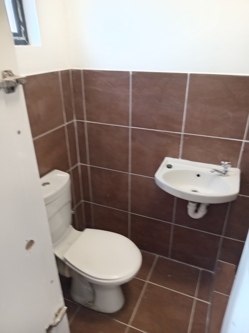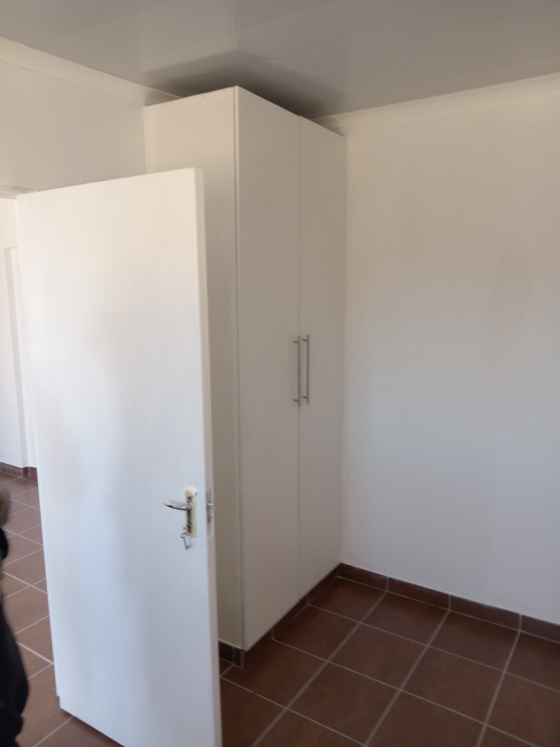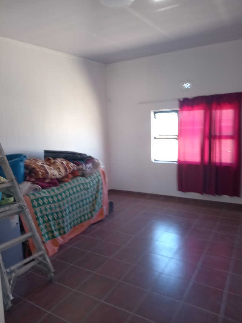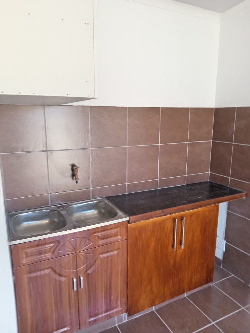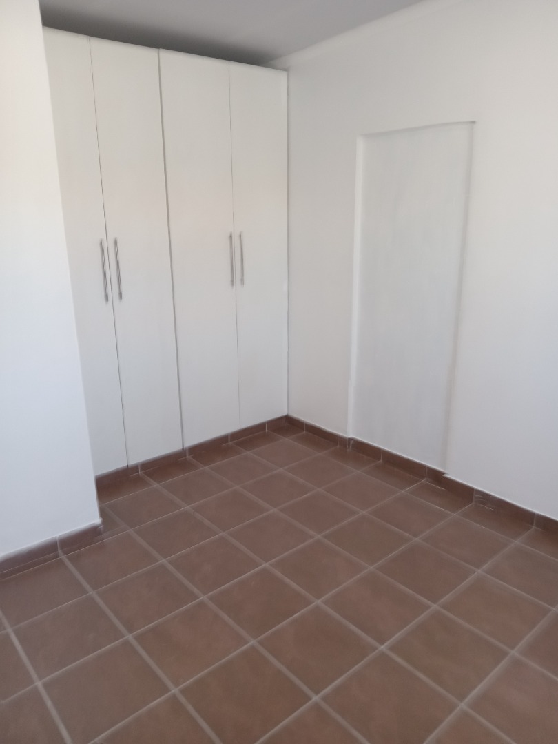 Living area, kitchen, 2 bedrooms and a bathroom.