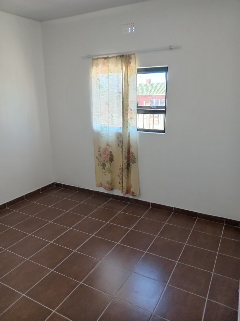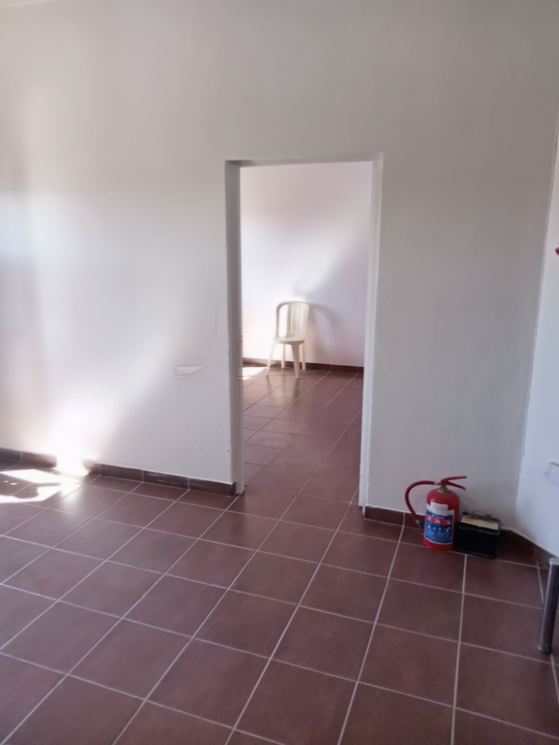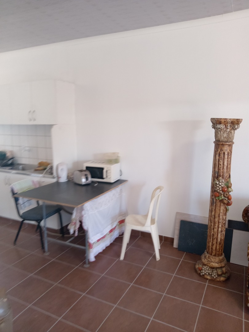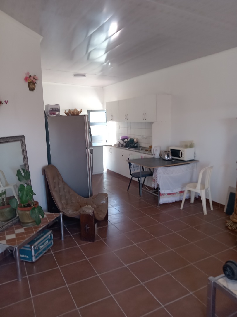 Living area, kitchen, 2 bedrooms and a bathroom.