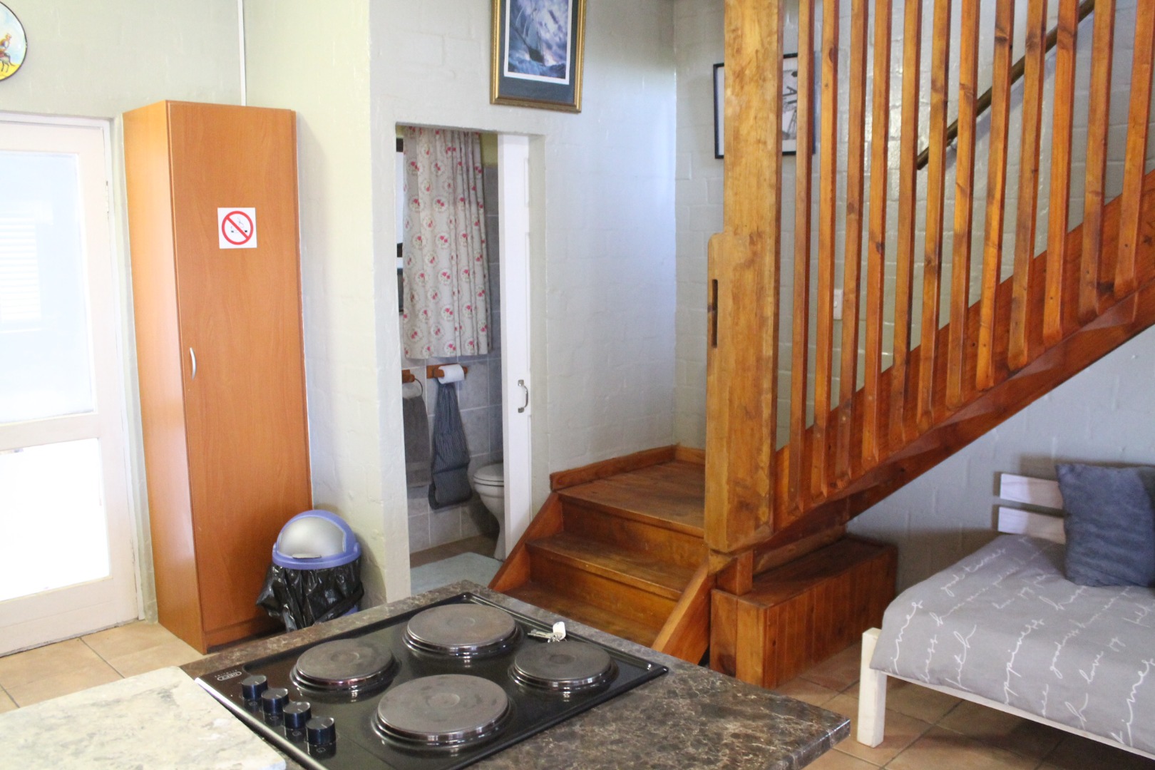 Second bedroom with built-in cupboards (currently set up for a single bed; can easily be converted into an on-suite)