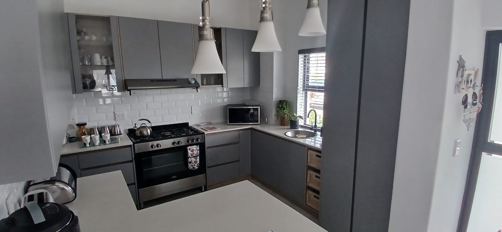 Also a Scullery with cupboards all around, space for double door fridge, washing machine, dishwasher and double sink.