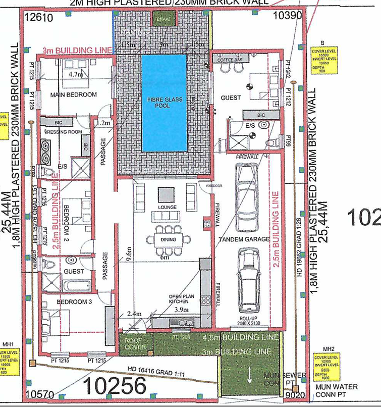 Tandem garage with additional guest bedroom and bathroom separate of the main dwelling.