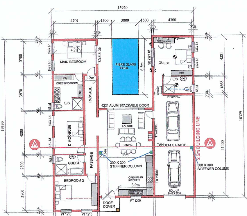 Open plan kitchen and dining room with glass doors that open up to the pool and rear yard area including an outside braai area.