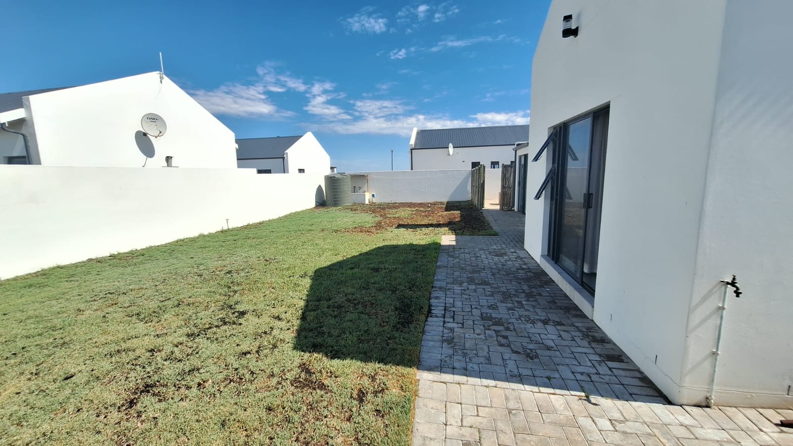 Additional features include smart light fittings, full tiling throughout the home, and fitted blinds for convenience and comfort. The property is also equipped with an inverter with three solar panels, a gas geyser, irrigation system, and a 3000L JoJo water tank, ensuring energy efficiency and sustainable living.