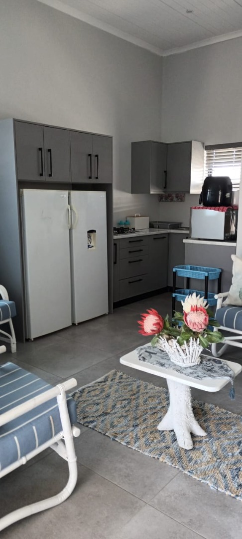 Get ready to unwind in this super charming 2-bedroom, 1-bathroom rental in beautiful Dwarskersbos, Velddrif! This lovely spot offers bright, airy coastal living. You'll find a comfy lounge and dining area, decked out with a fresh nautical vibe, practical tiled flooring, and a cool planked vaulted ceiling. It’s the perfect setup for kicking back after a day at the beach. The compact kitchenette is super functional, featuring modern grey cabinets, two handy refrigerators, a microwave, and an air fryer – everything you need for easy meals. The fantastic outdoor living is a real gem! Step out to your private patio through sliding glass doors, where a built-in brick braai awaits for sunny South African cookouts. A dedicated outdoor dining area makes al fresco meals a breeze. You’ll love the inviting paved courtyards, adorned with vibrant flowers and offering plenty of spots to relax. Whether soaking up the sun or chilling in the shade under the rustic wooden lath structure or pergola, there’s a cozy nook for everyone. The property boasts a clean, white-washed exterior with charming stone accents, giving it that classic coastal appeal. This versatile space is great for dual living arrangements or simply enjoying extra room. Nestled in picturesque Dwarskersbos, you’re perfectly positioned to enjoy aquatic activities and the stunning beach life that Velddrif has to offer. This rental is ideal for anyone seeking a peaceful escape with all the comforts of home, plus those lovely outdoor perks. Key Features: * 2 Bedrooms, 1 Bathroom * Bright Lounge & Dining Area * Functional Kitchenette with Appliances * Built-in Brick Braai & Outdoor Dining * Charming Paved Courtyards & Patios * Coastal Nautical Decor * One Parking Bay * Dual Living Potential