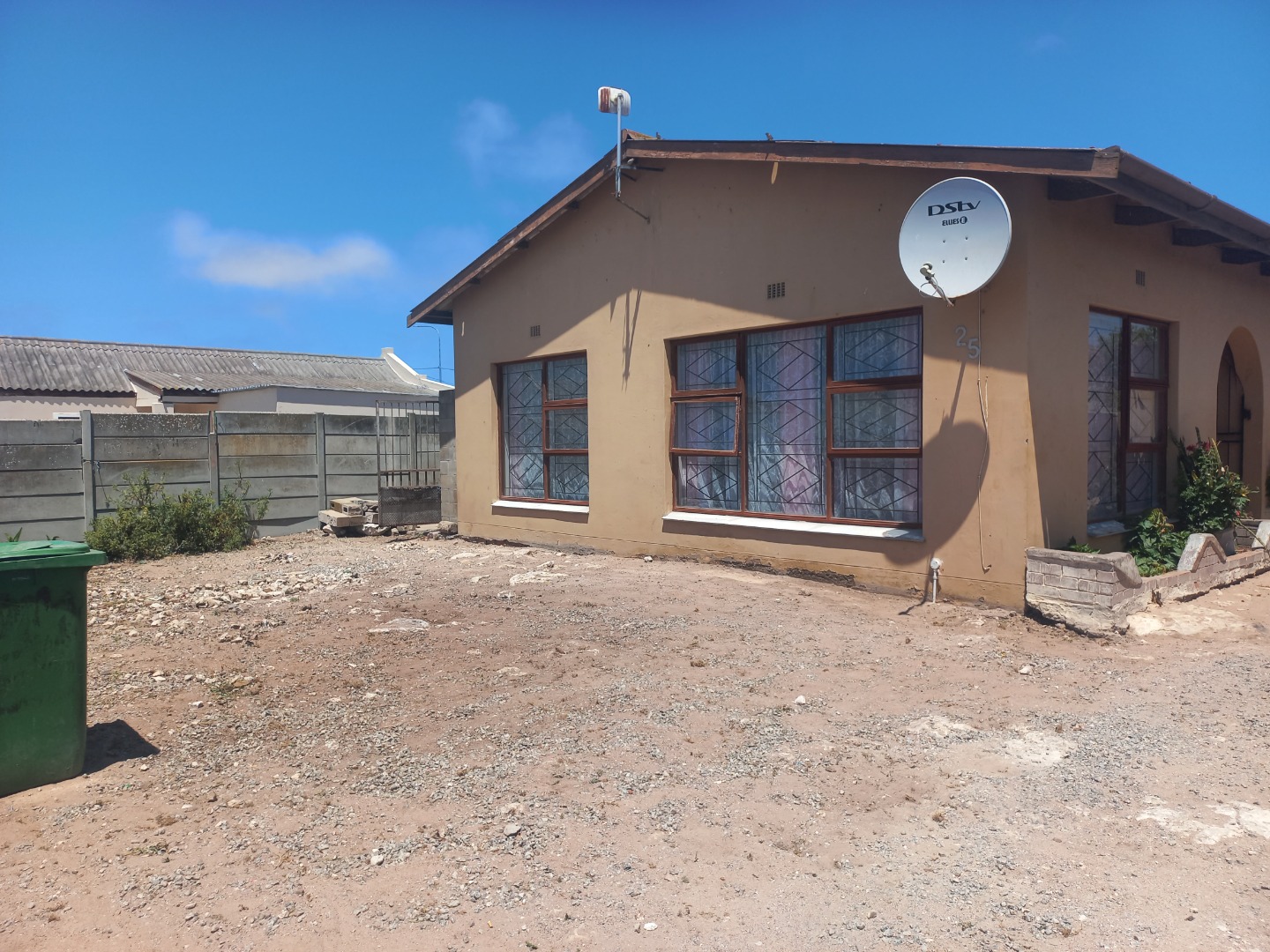 Check out this lovely home in Diazville, Saldanha, a secure, fenced property. There's also an attached garage, perfect for parking your car or storage, plus plenty of extra parking space for up to four vehicles on the driveway. The exterior has a nice, welcoming feel, with a satellite dish already installed.