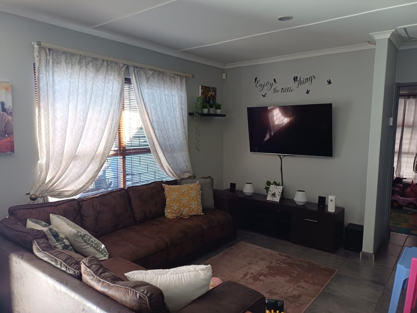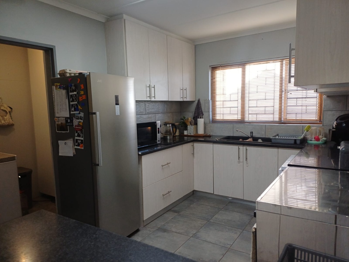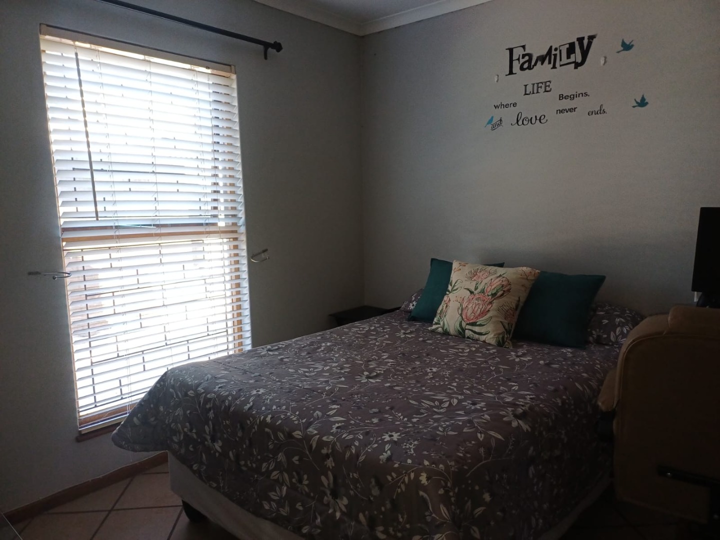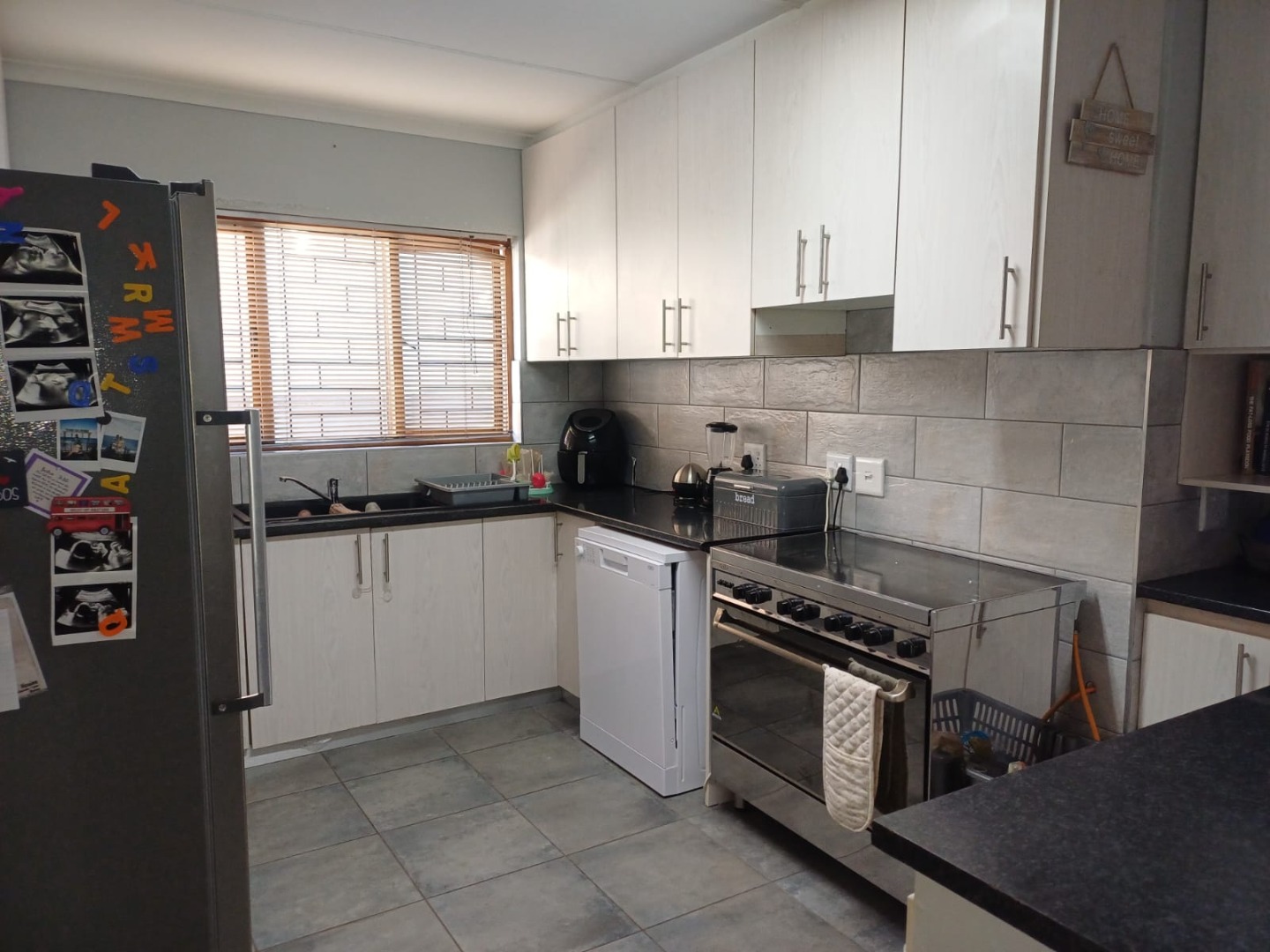 Large windows allow natural light to flood the living areas, which are finished with durable tiled flooring throughout.