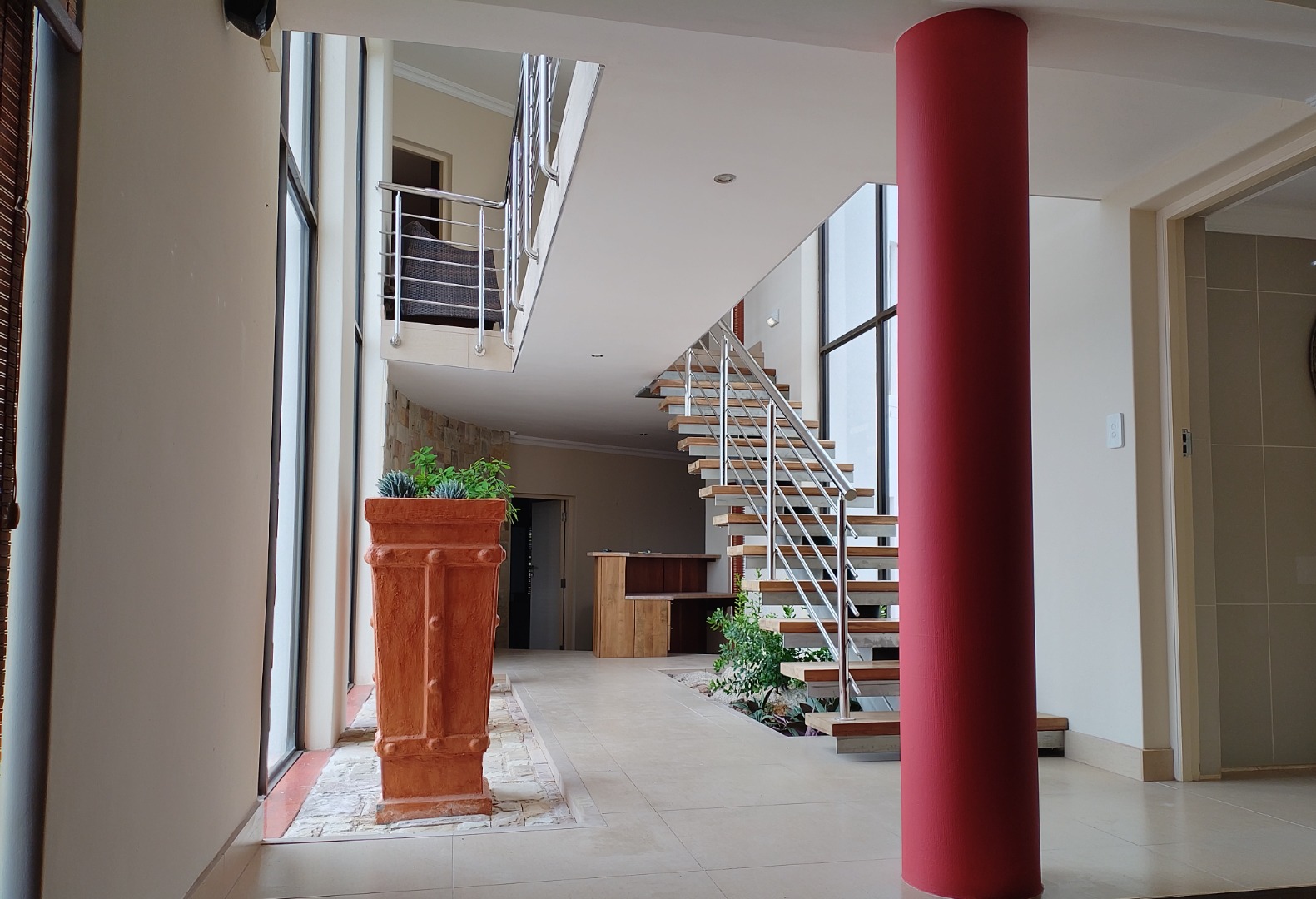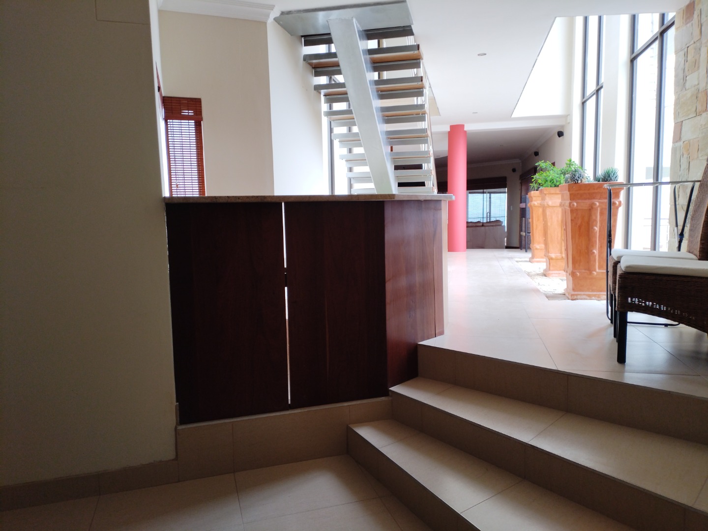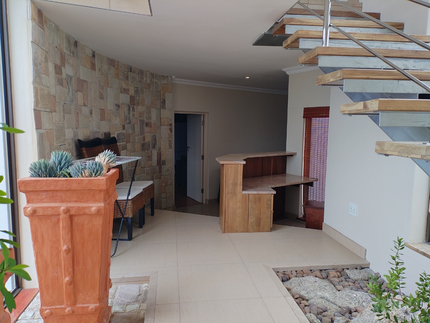 Step into expansive living spaces where a spacious covered balcony becomes the ideal setting for morning coffees, sunset dinners, or effortless entertaining. The home's refined interior is anchored by a built-in braai, fireplace, and a stylish bar area, creating a warm and inviting atmosphere for gatherings year-round.