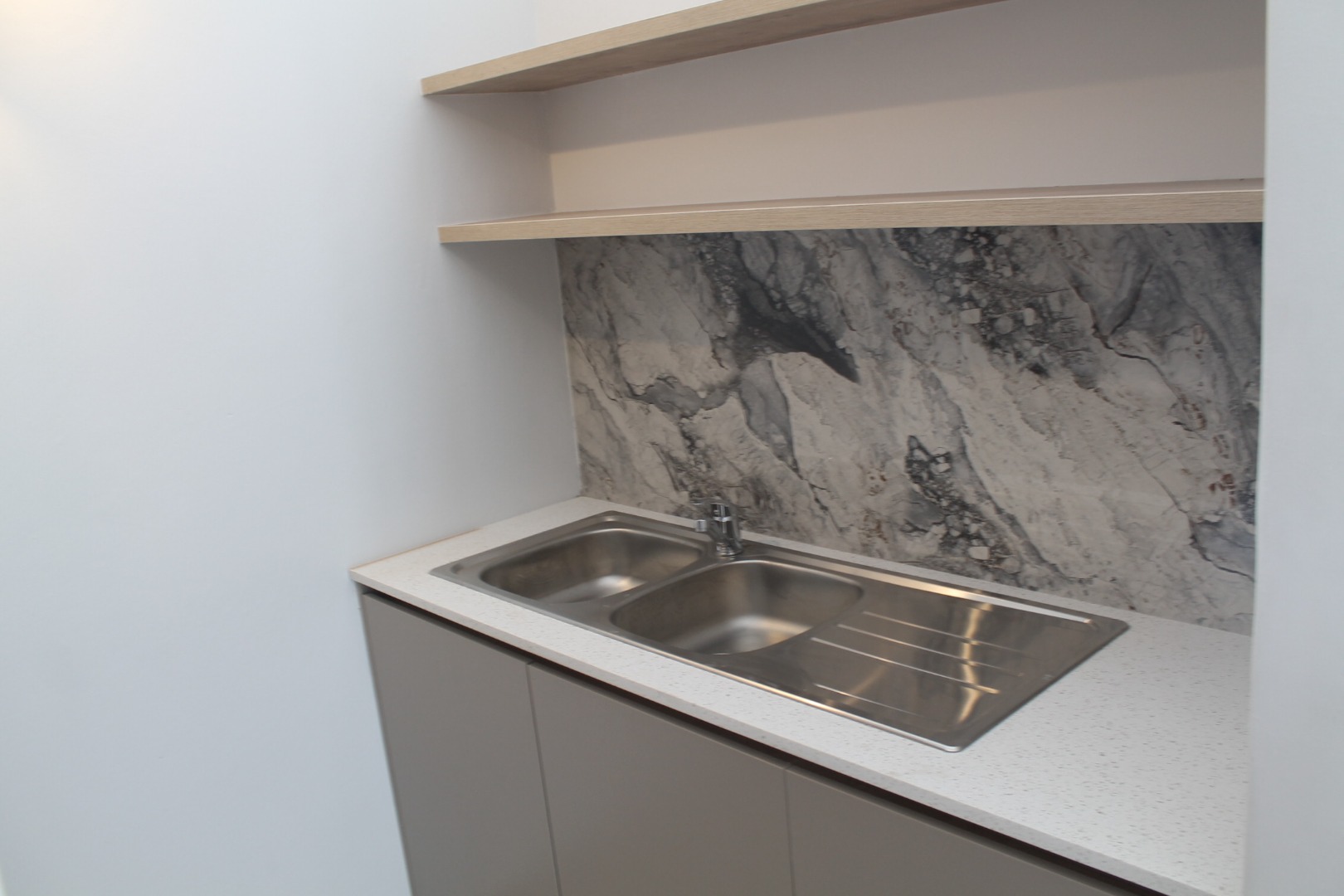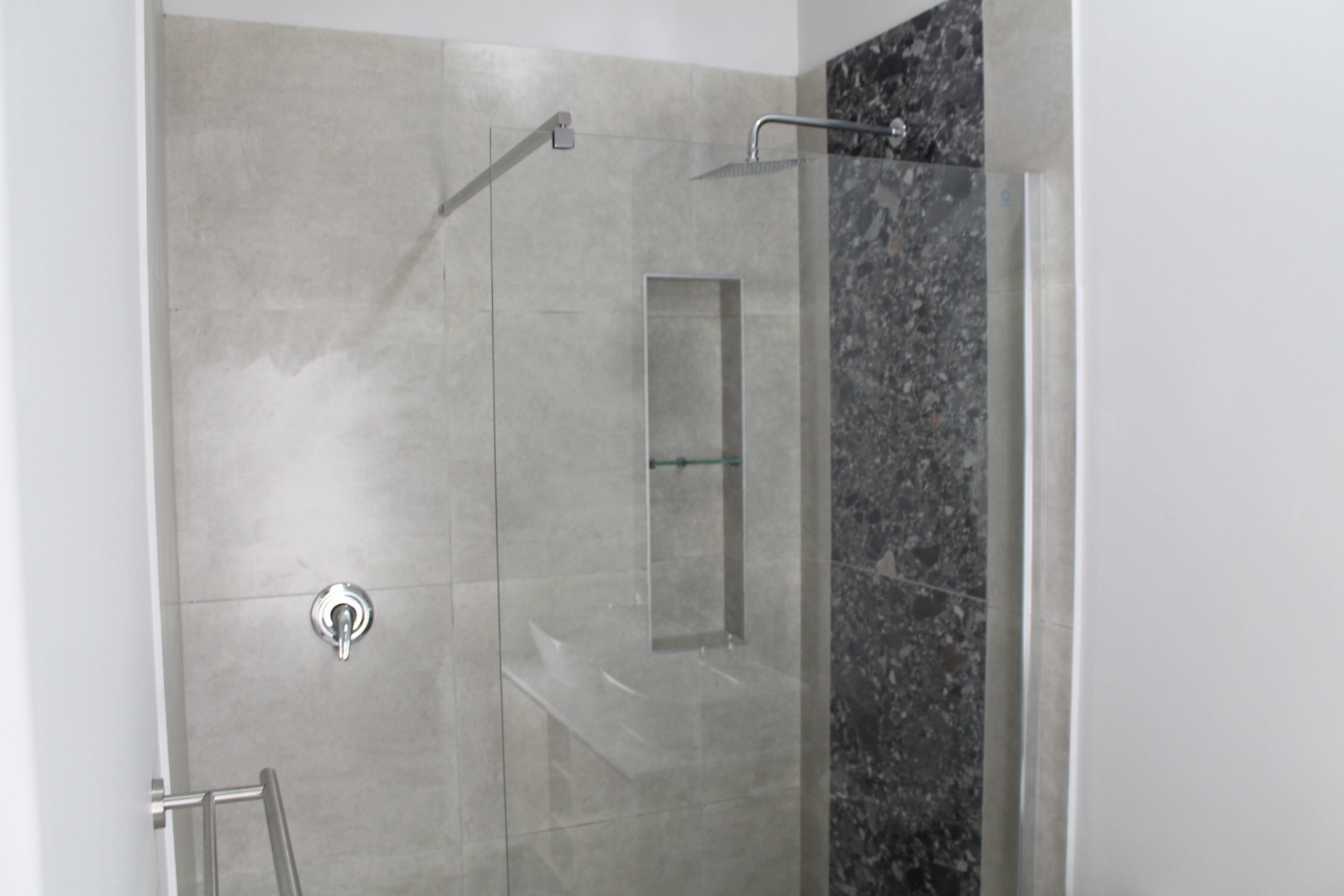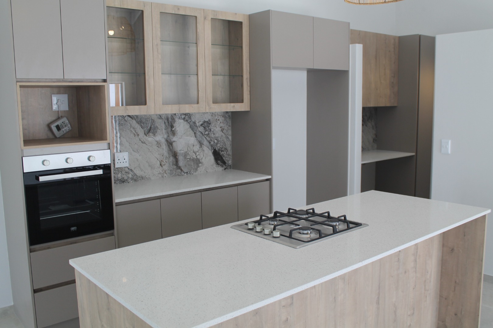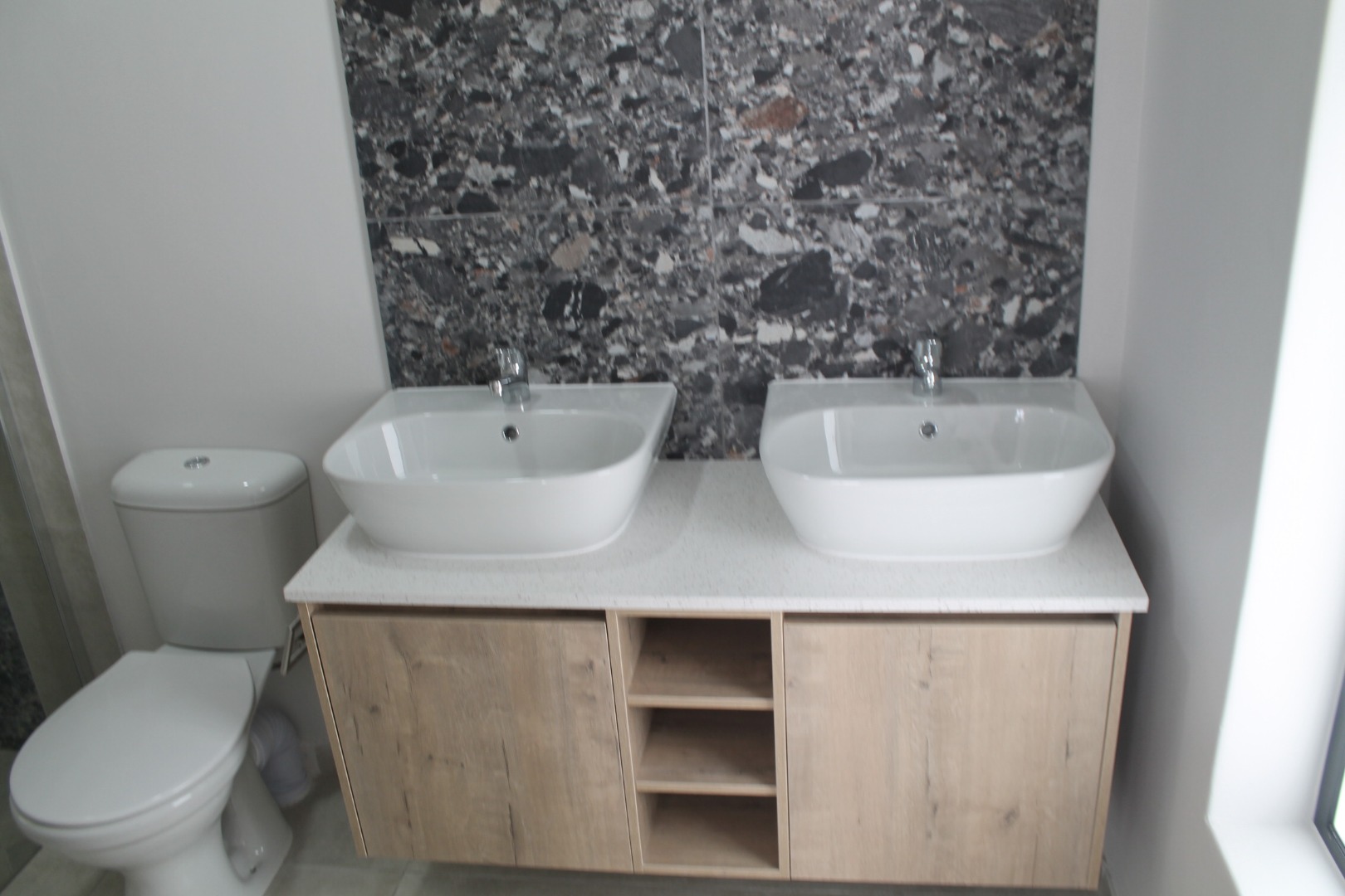 The main bedroom includes a stylish on-suite bathroom, while the two additional bedrooms share a contemporary family bathroom. All bedrooms are generously sized, fitted with built-in cupboards, and filled with natural light.