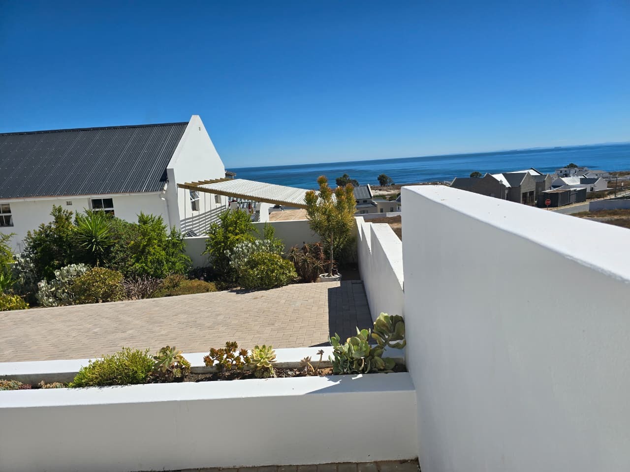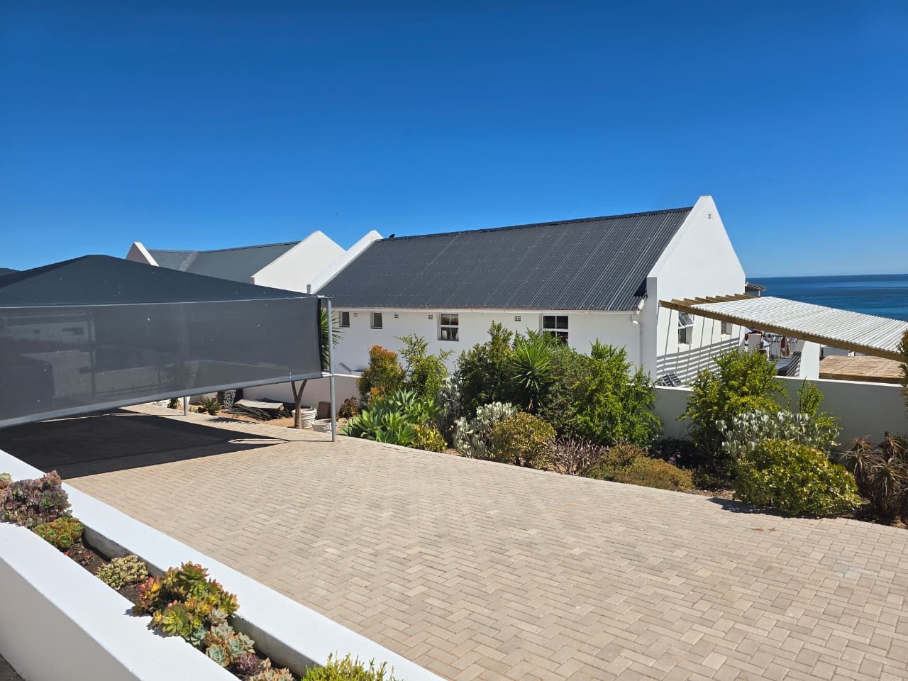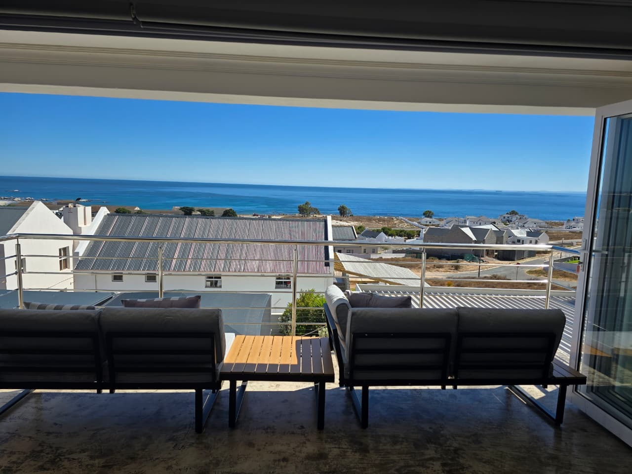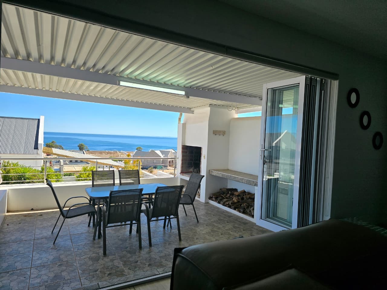 Large covered sea-facing patio with built-in braai