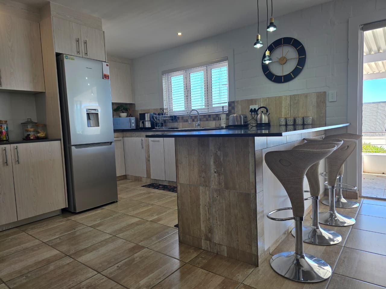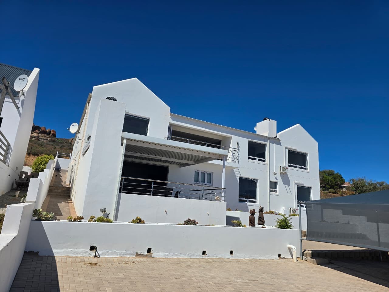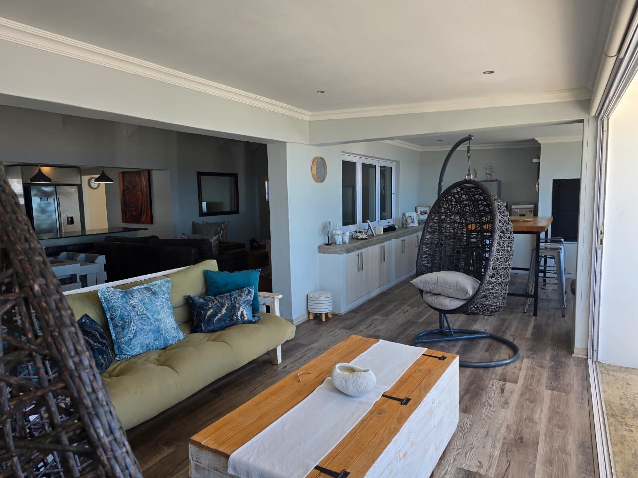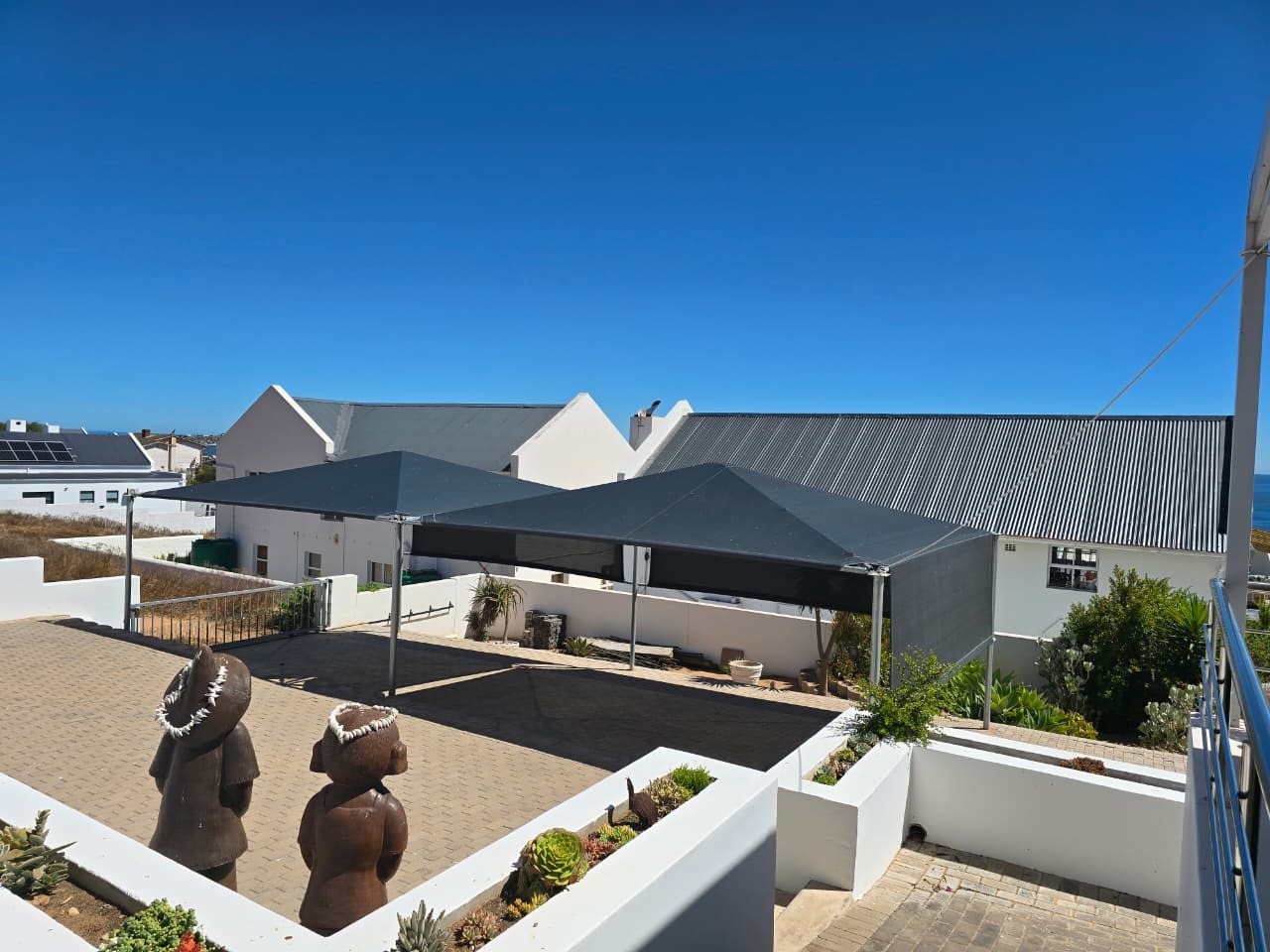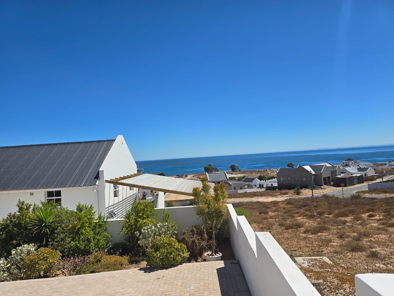 Large covered sea-facing patio with built-in braai