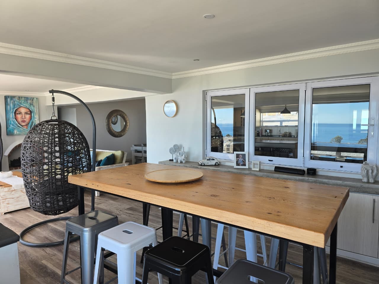 Expansive open-plan living areas with high ceilings and sea views