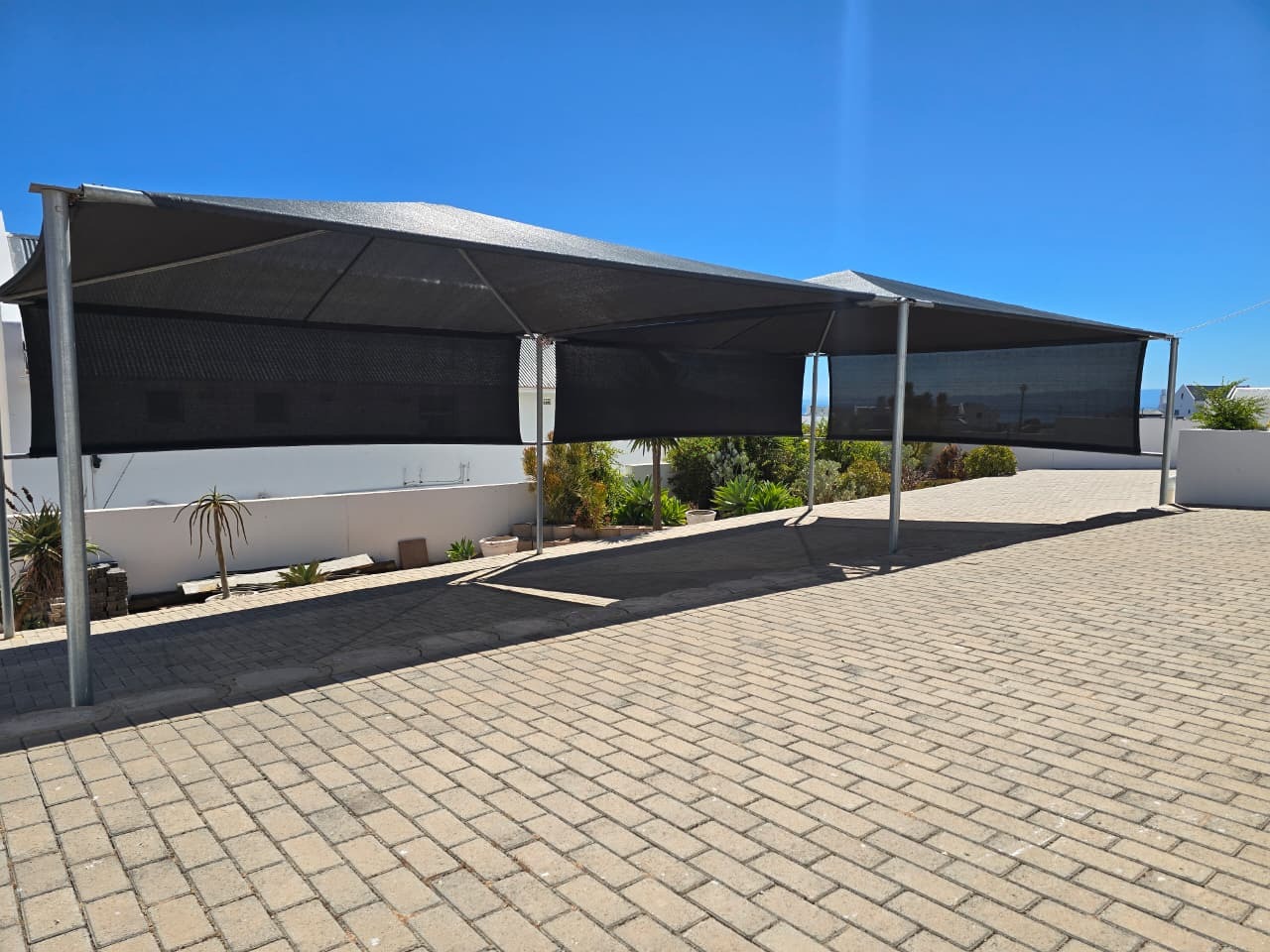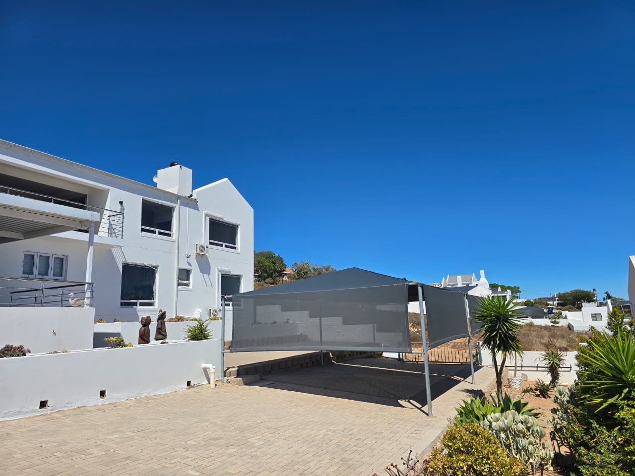 Large paved and shaded back garden area