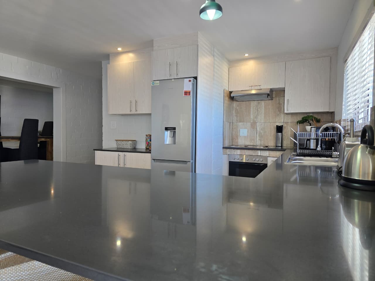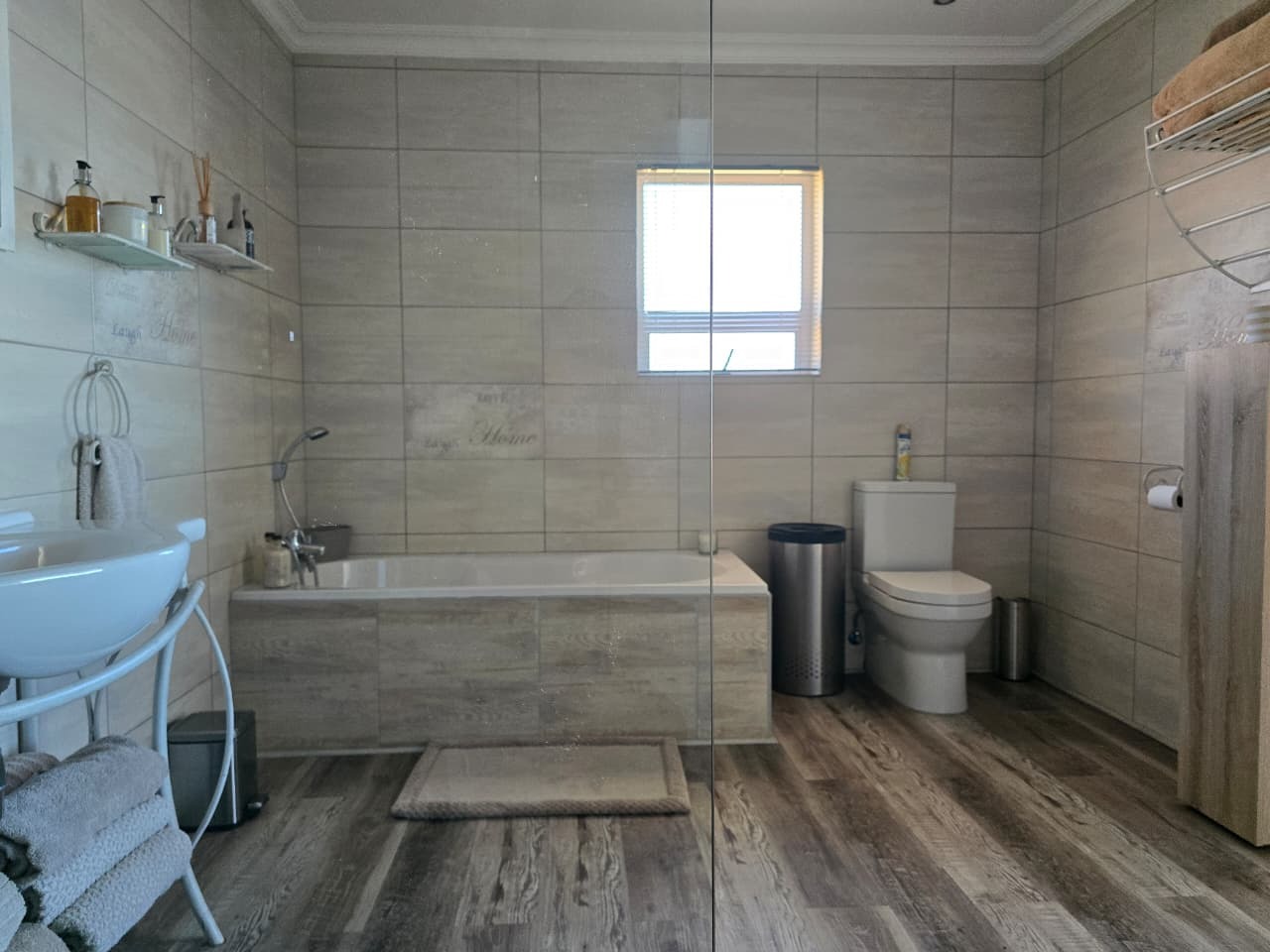Tiled throughout with blinds fitted