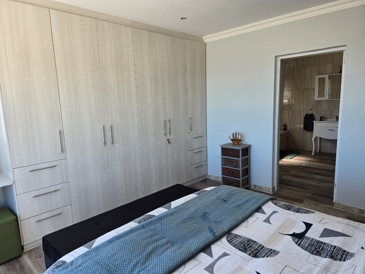 Bedroom 1: Built-in cupboards with full en-suite bathroom