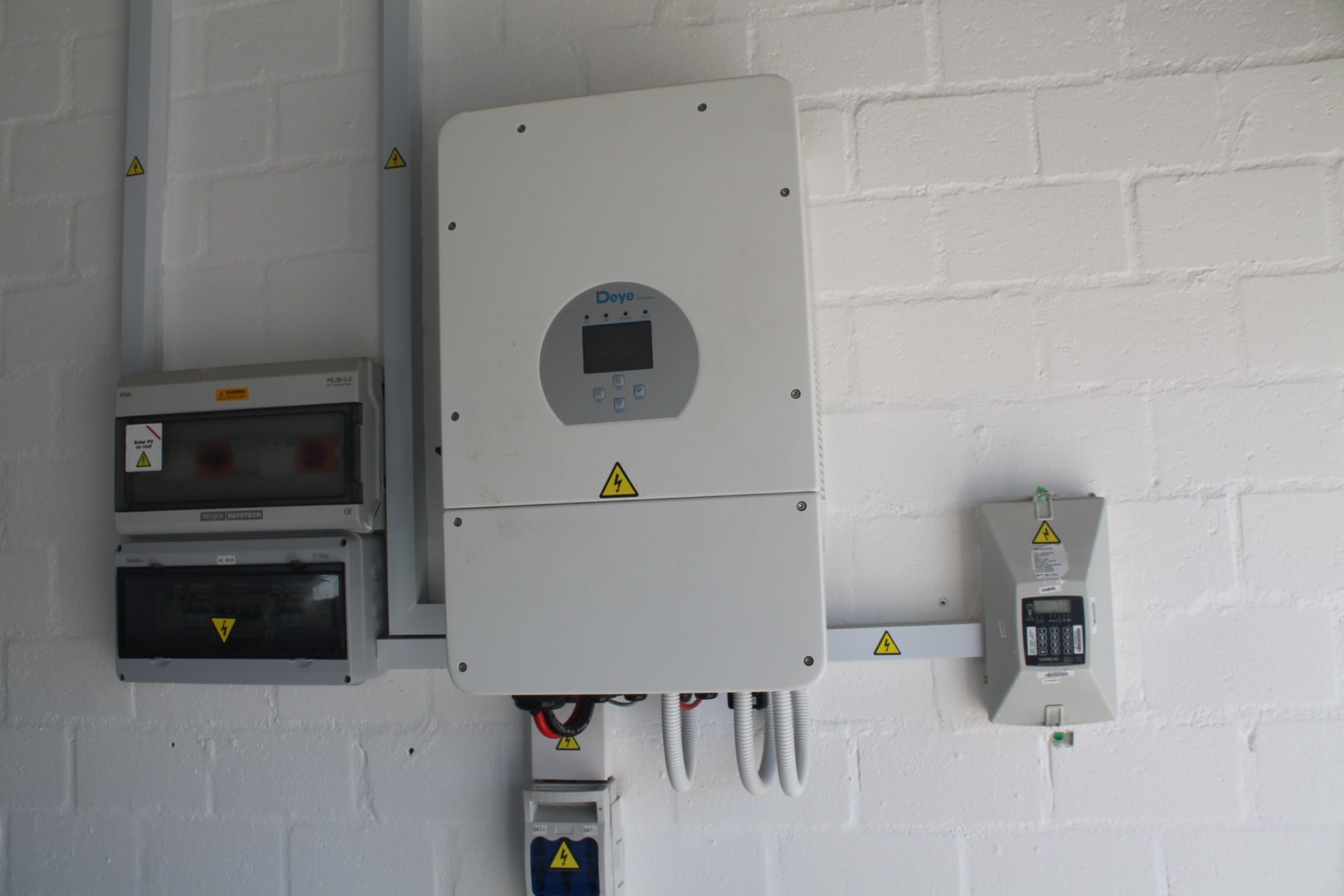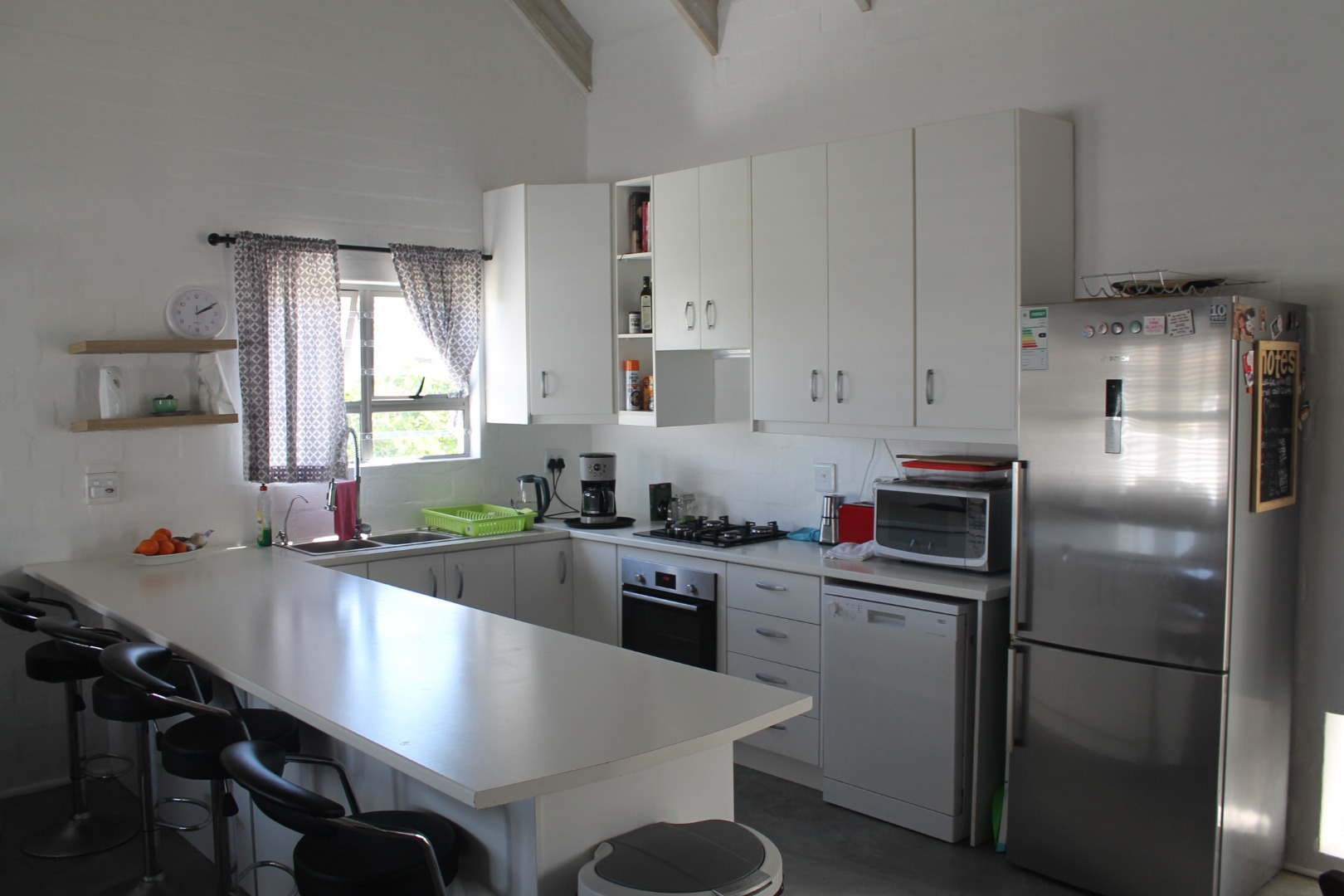 - An open plan kitchen with ample built-in cupboards, a gas hob,