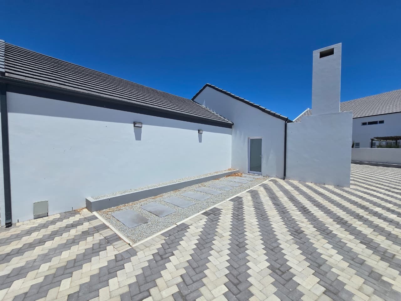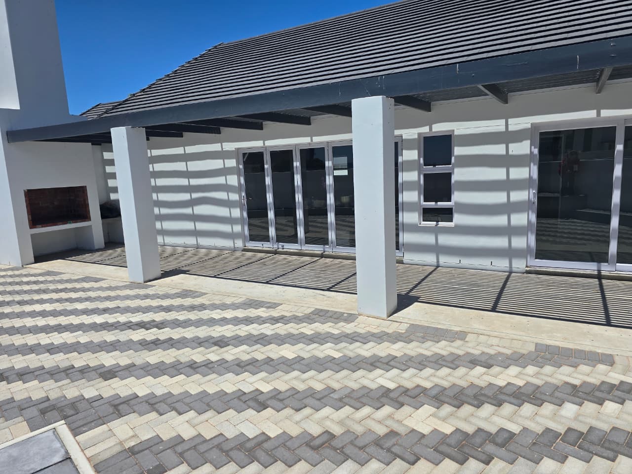 Step outside to a pergola-covered patio with a built-in braai, ideal for entertaining while enjoying distant sea views and the tranquillity of the surrounding countryside. Whether hosting friends or unwinding after a long day, this space is made for easy living.