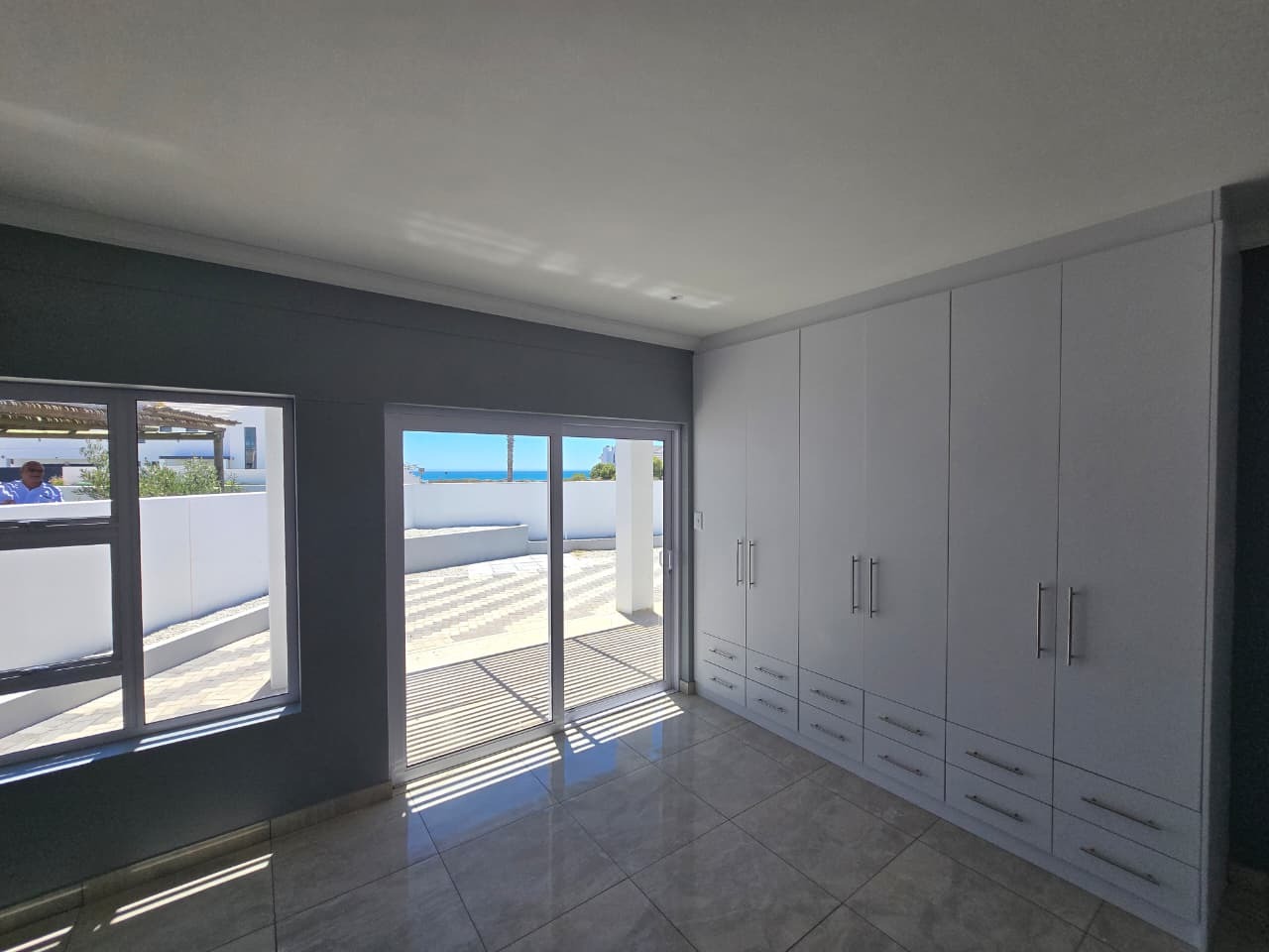 Each bedroom room with build in cupboards, main bedroom with sliding doors with front view on patio.