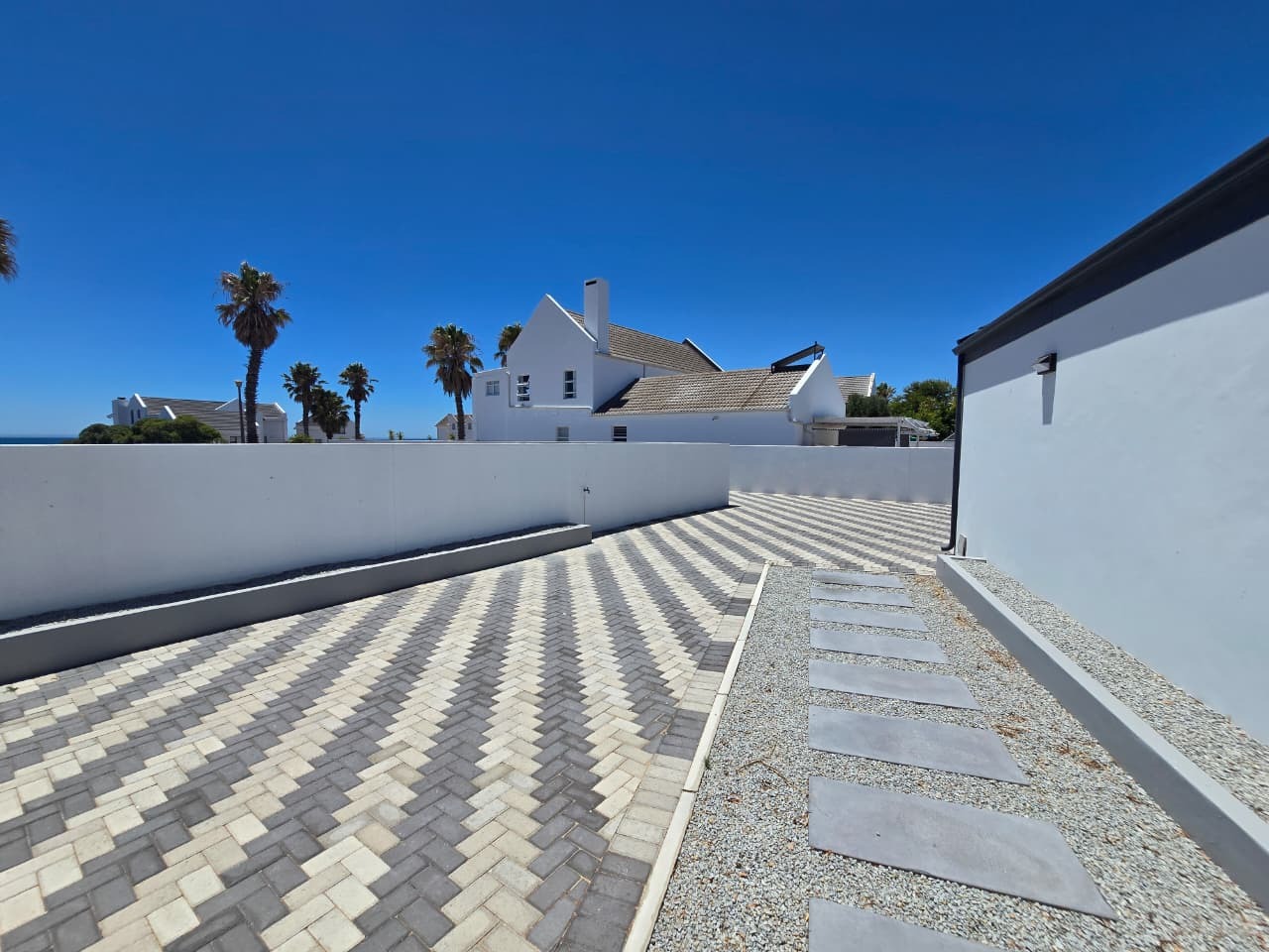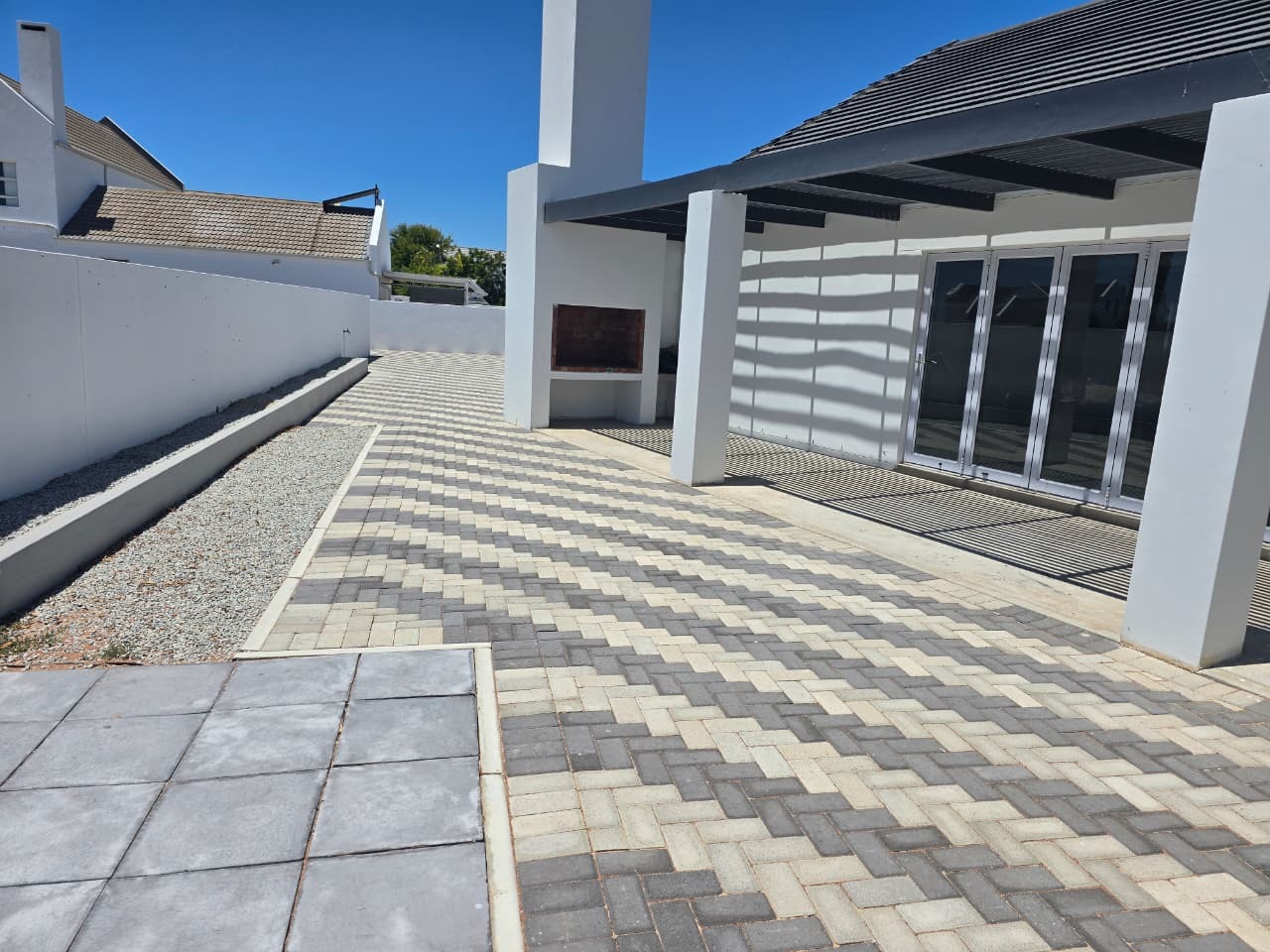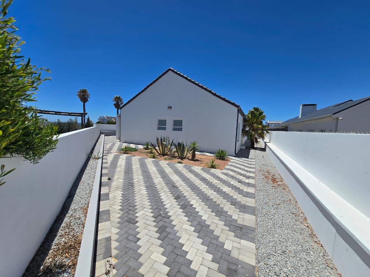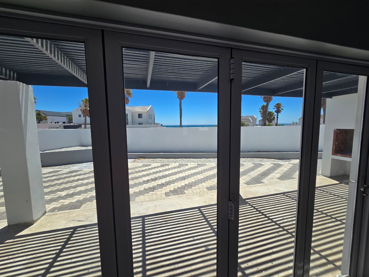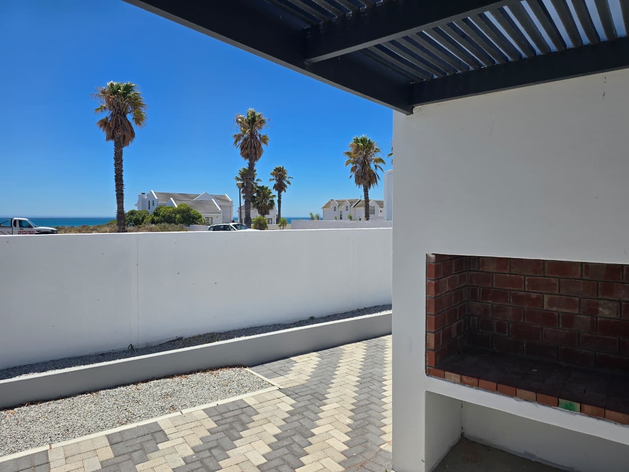 Step outside to a pergola-covered patio with a built-in braai, ideal for entertaining while enjoying distant sea views and the tranquillity of the surrounding countryside. Whether hosting friends or unwinding after a long day, this space is made for easy living.