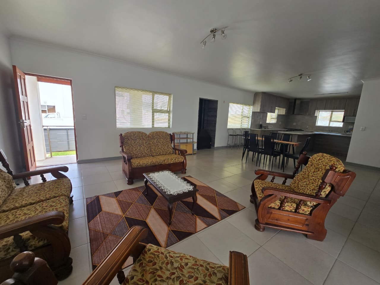 The welcoming open-plan layout includes a spacious lounge flowing seamlessly into the modern kitchen.