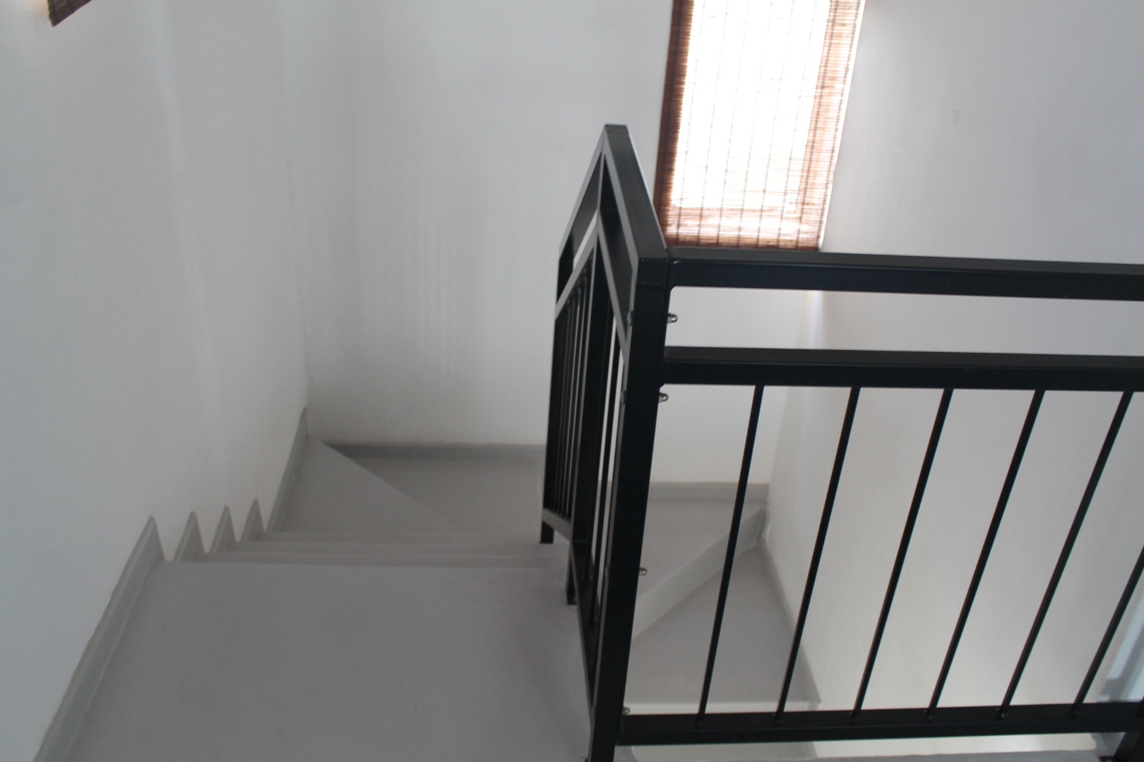 Upstairs, the home offers three well-sized bedrooms. The main bedroom features an en-suite bathroom and a private balcony overlooking a tranquil green belt. Two additional bedrooms share a full family bathroom.