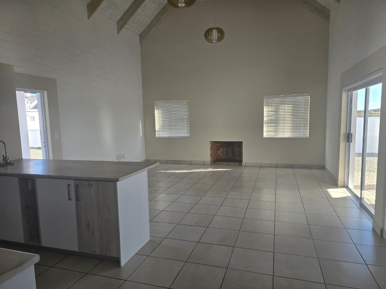 A charming fireplace adds warmth for cooler evenings, and sliding doors invite in natural light while creating a seamless indoor-outdoor flow.