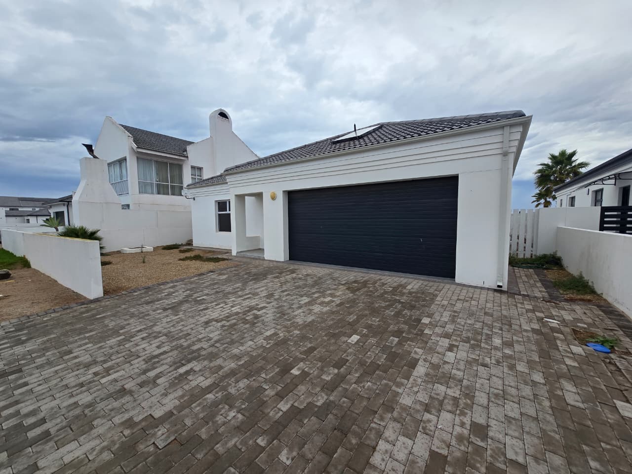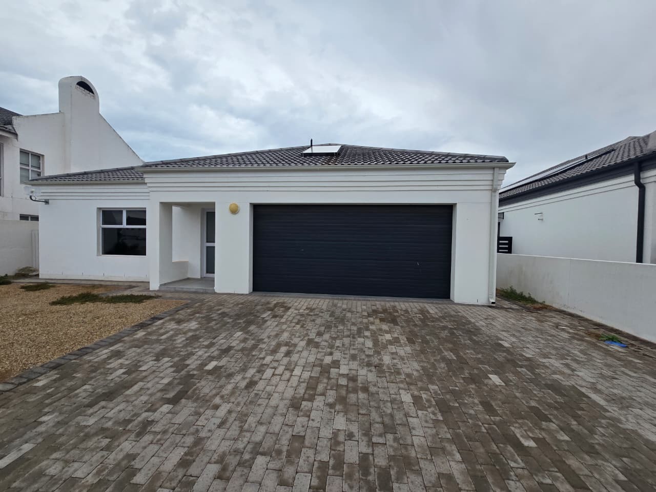 This contemporary residence, situated within the esteemed Sandy Point Beach Estate in St Helena Bay, presents an exceptional opportunity for discerning buyers. The property exhibits a modern aesthetic with a clean white exterior, dark tiled roof, and a paved driveway leading to a double integrated garage. A solar hot water panel underscores a commitment to efficiency. Upon entry, the interior reveals a meticulously designed open-plan living and dining area, characterized by abundant natural light, elegant tiled flooring, and a neutral colour palette. The space seamlessly integrates a built-in braai, ideal for entertaining. The modern kitchen, featuring a striking black and white design, boasts extensive cabinetry, black countertops, a central island, and built-in appliances. A dedicated scullery enhances functionality. The residence comprises three well-appointed bedrooms and two bathrooms, including a private ensuite in the main bedroom. Each space maintains a contemporary, clean aesthetic, with the main bedroom benefiting from an air conditioning unit for optimal comfort. A convenient guest toilet is also provided. Positioned within a secure estate, this property offers peace of mind. The paved exterior and pet-friendly policy add to its undeniable appeal, with dedicated space for boat storage catering to a coastal lifestyle. Sandy Point Beach Estate offers a desirable coastal beach environment, perfect for tranquil living. Key Features: * Three Bedrooms, Two Bathrooms (One Ensuite) * Modern Open-Plan Living and Dining * Contemporary Kitchen with Central Island * Integrated Built-in Braai * Double Integrated Garage * Secure Estate Environment * Solar Hot Water Panel