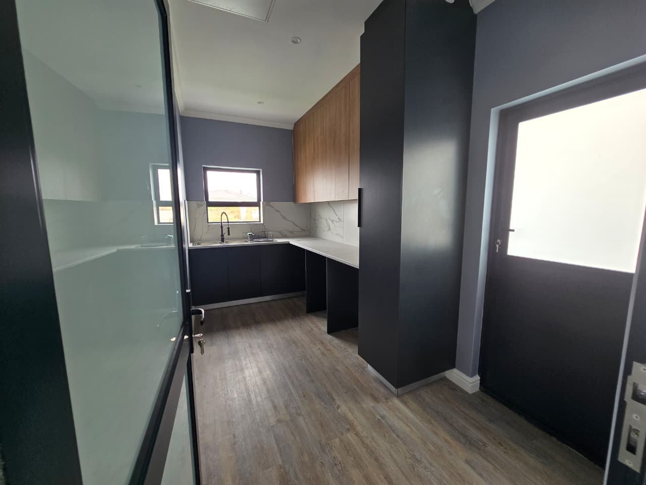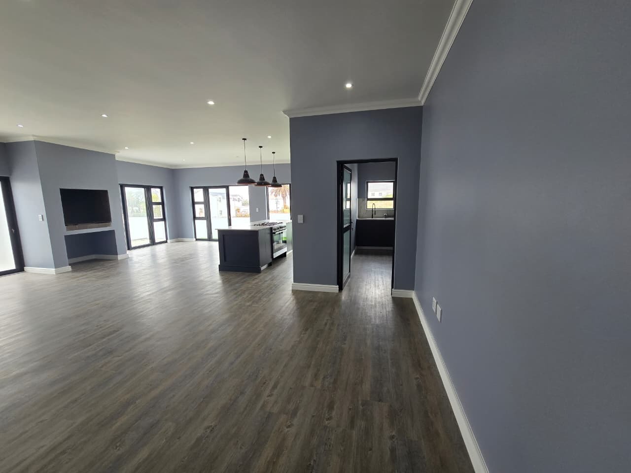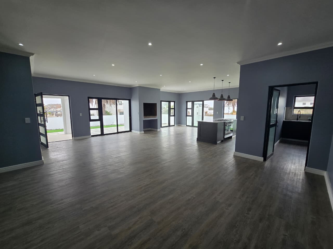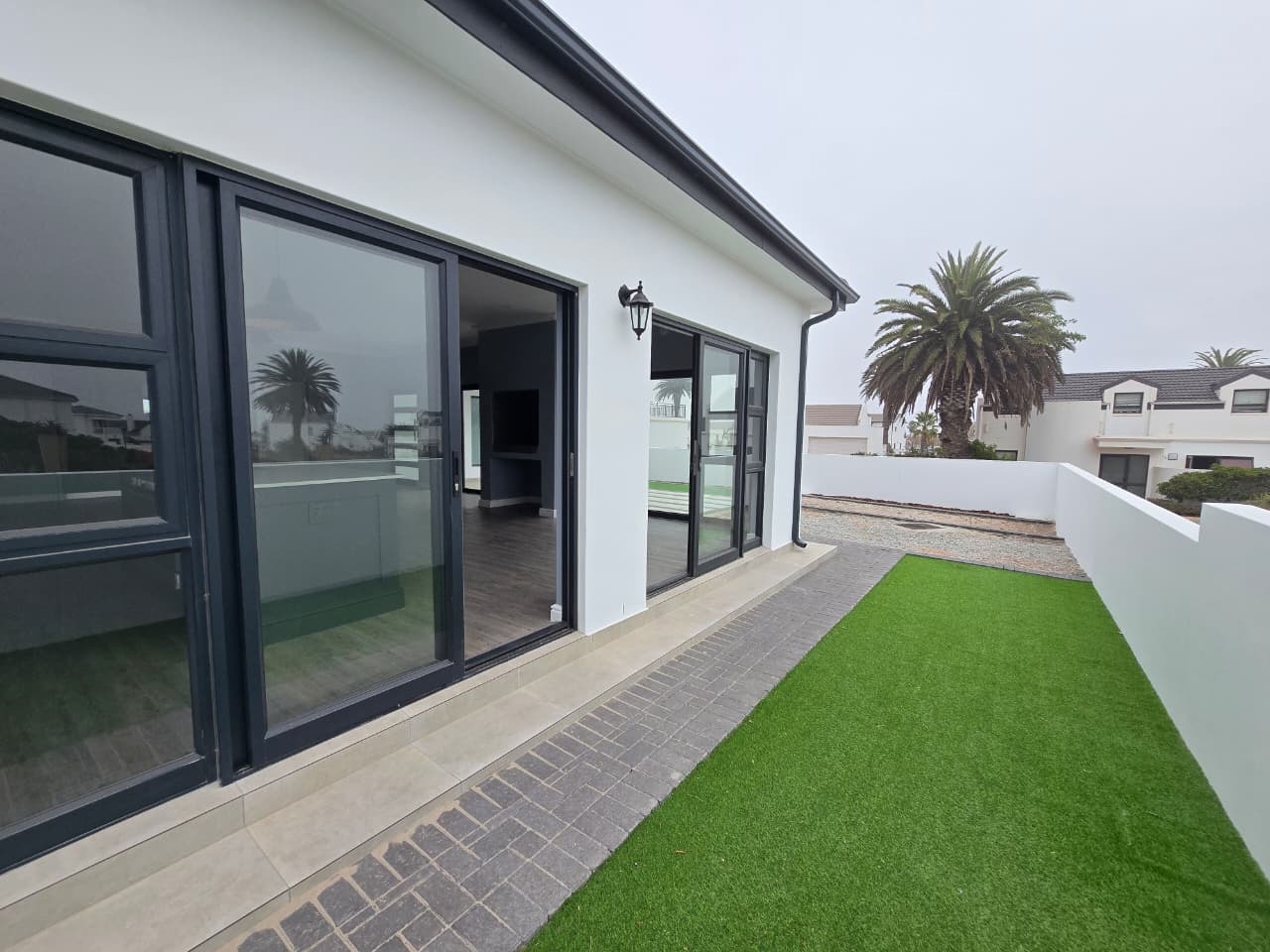 Discover modern coastal living in this contemporary home located within the Shelley Point Estate in St Helena Bay, South Africa. Boasting a pristine white exterior complemented by striking dark-framed windows and a dark roof, this property immediately impresses with its clean architectural lines. Large glass sliding doors enhance the modern aesthetic and promise natural light throughout the interior.