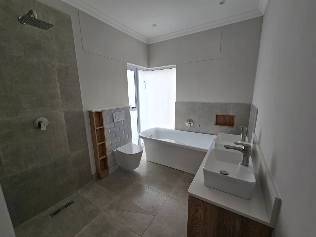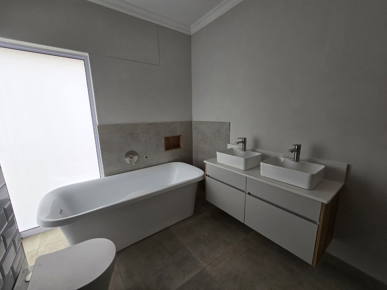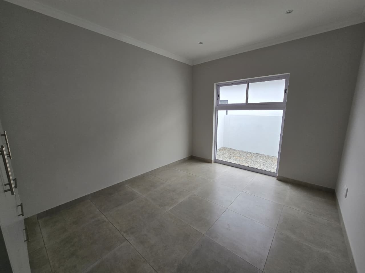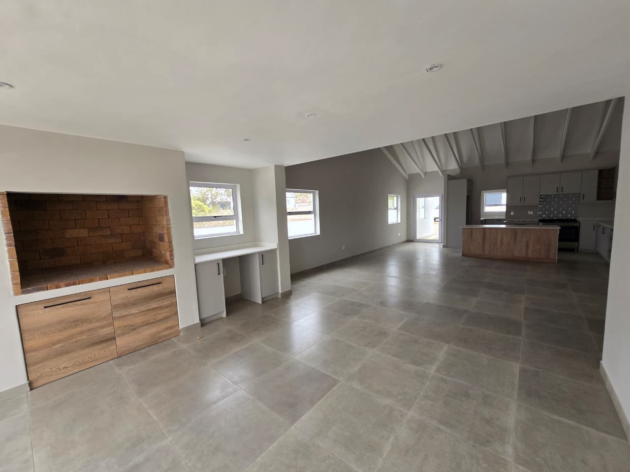 Accommodation comprises three comfortable bedrooms, with one of the two bathrooms being an en-suite, offering privacy and convenience. Practical features include a double garage, ensuring secure parking and additional storage. For outdoor enjoyment, a built-in braai is provided, perfect for social gatherings. The inclusion of a solar geyser contributes to energy efficiency.