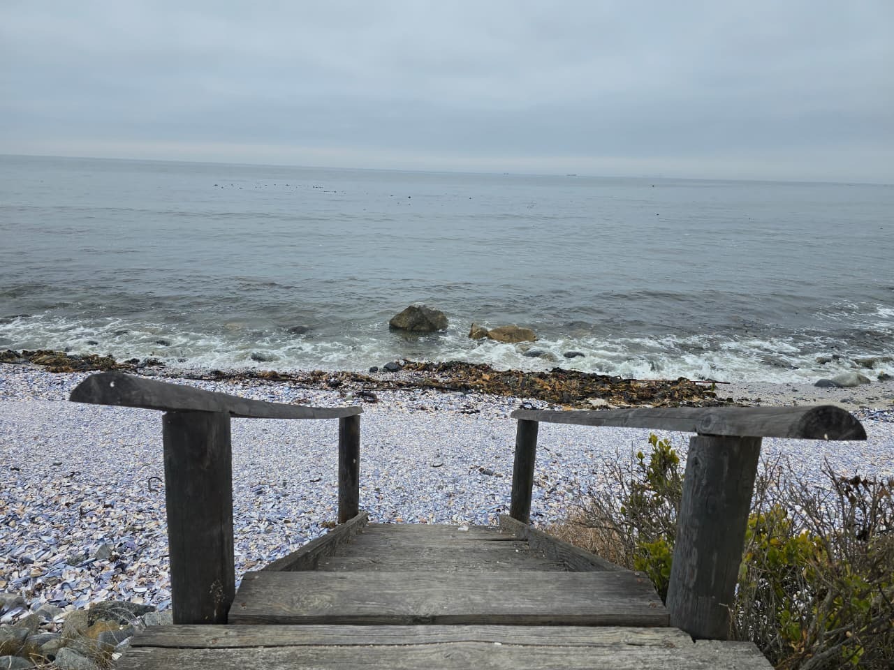 - Natural landscaping with shrubs and mature trees, including a striking palm feature