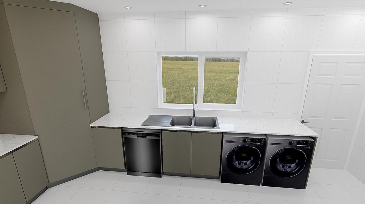 Spacious scullery with appliance connections