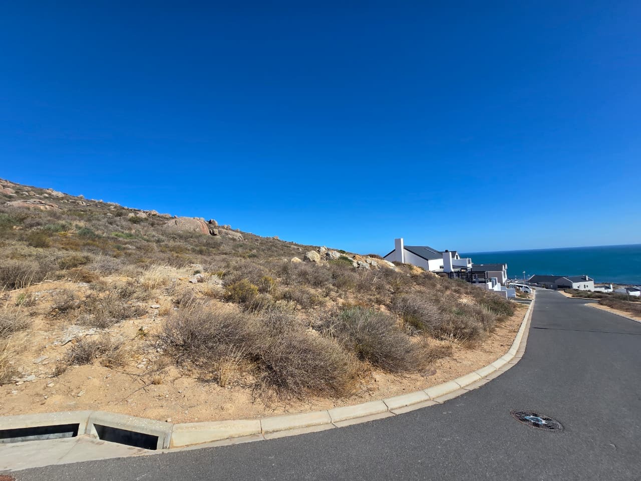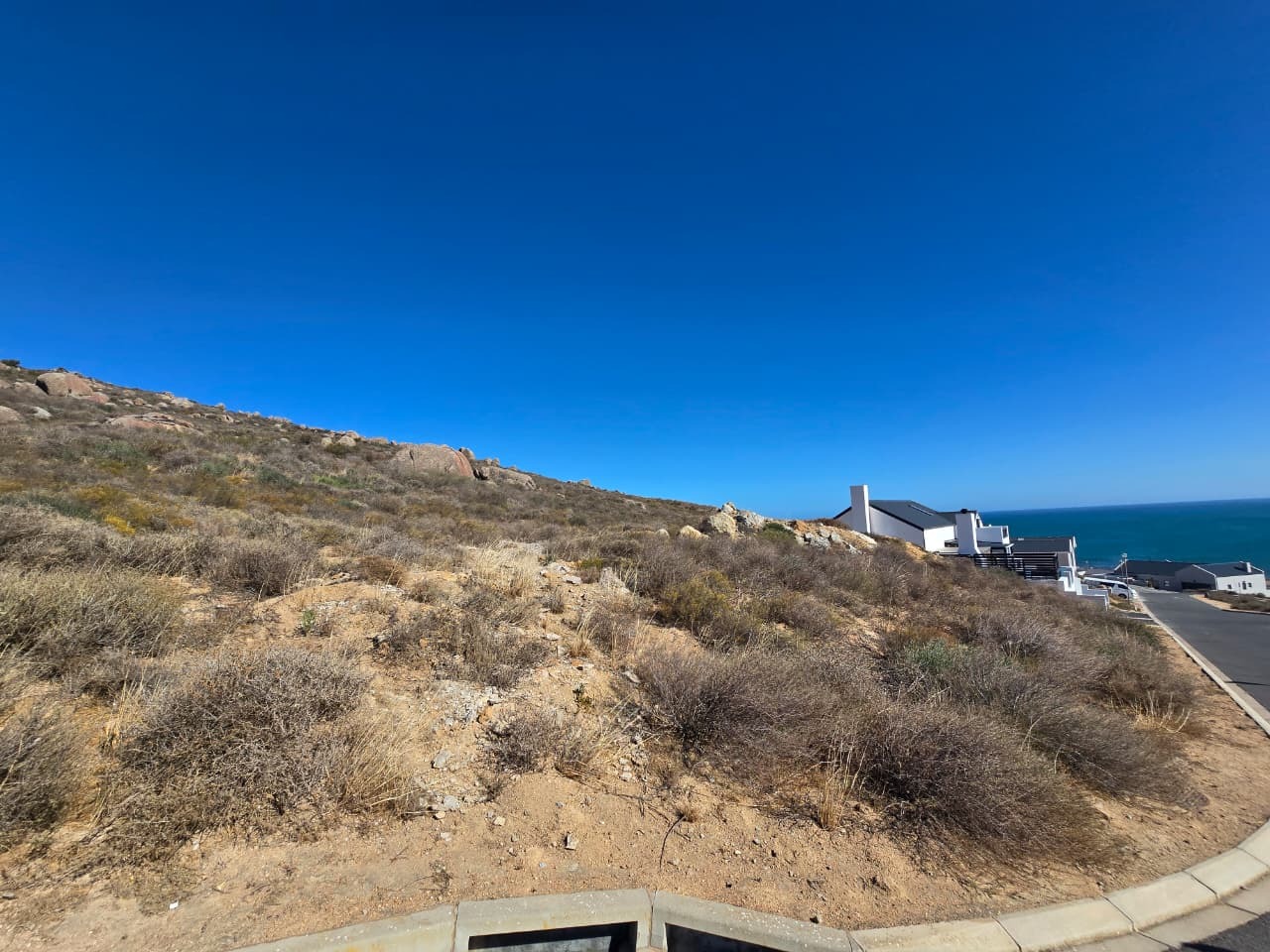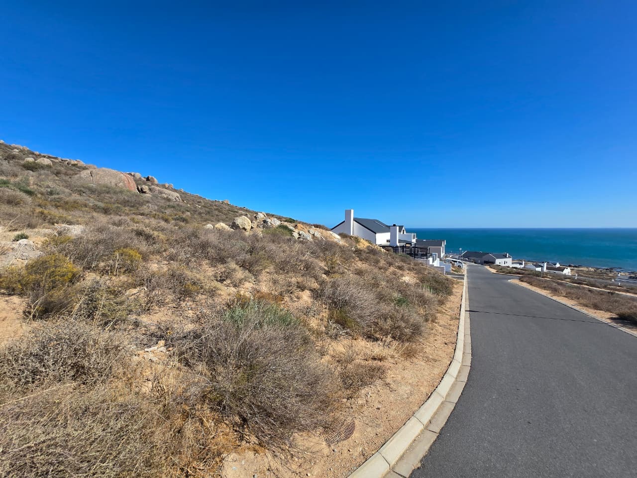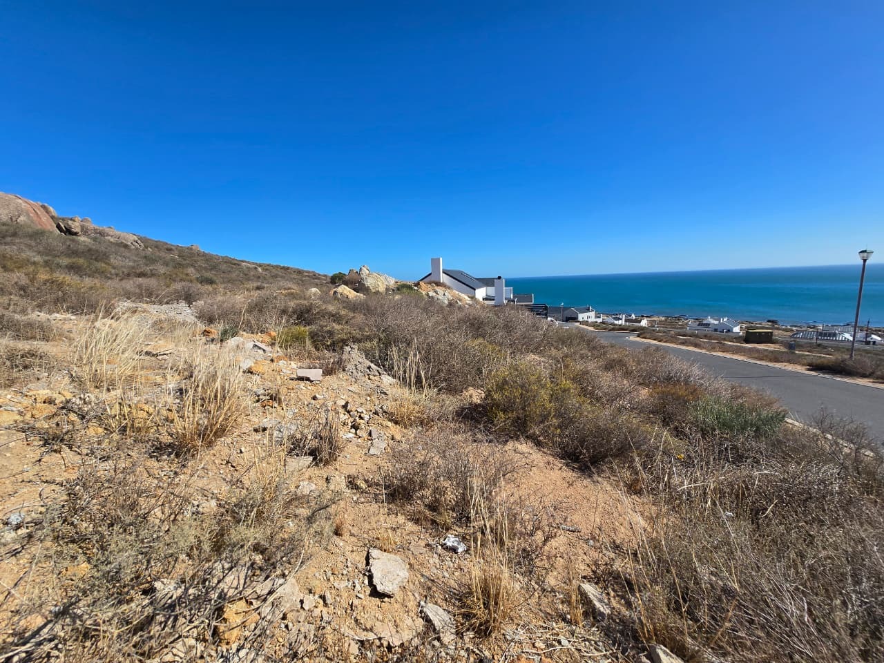 Exceptional opportunity to acquire a prime 400 sqm undeveloped plot in the sought-after coastal area of St Helena Views, St Helena Bay, South Africa. This elevated property offers breath taking, sea views, providing an ideal canvas for designing your dream coastal residence. The location is characterized by its natural, arid fynbos-like vegetation and rocky terrain, presenting a unique opportunity for creative landscaping that integrates with the indigenous environment.