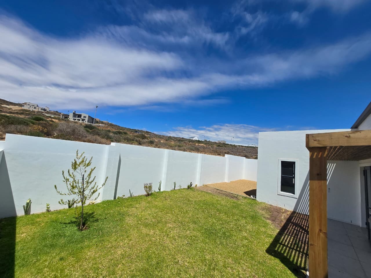 The interior of this home spans a comfortable 148 sqm, featuring a well-appointed kitchen, a dedicated dining room, and a spacious lounge, providing ample space for relaxation and entertaining. An inviting entrance hall sets the tone, leading into the main living areas, which include a dedicated braai room – perfect for year-round indoor entertaining.