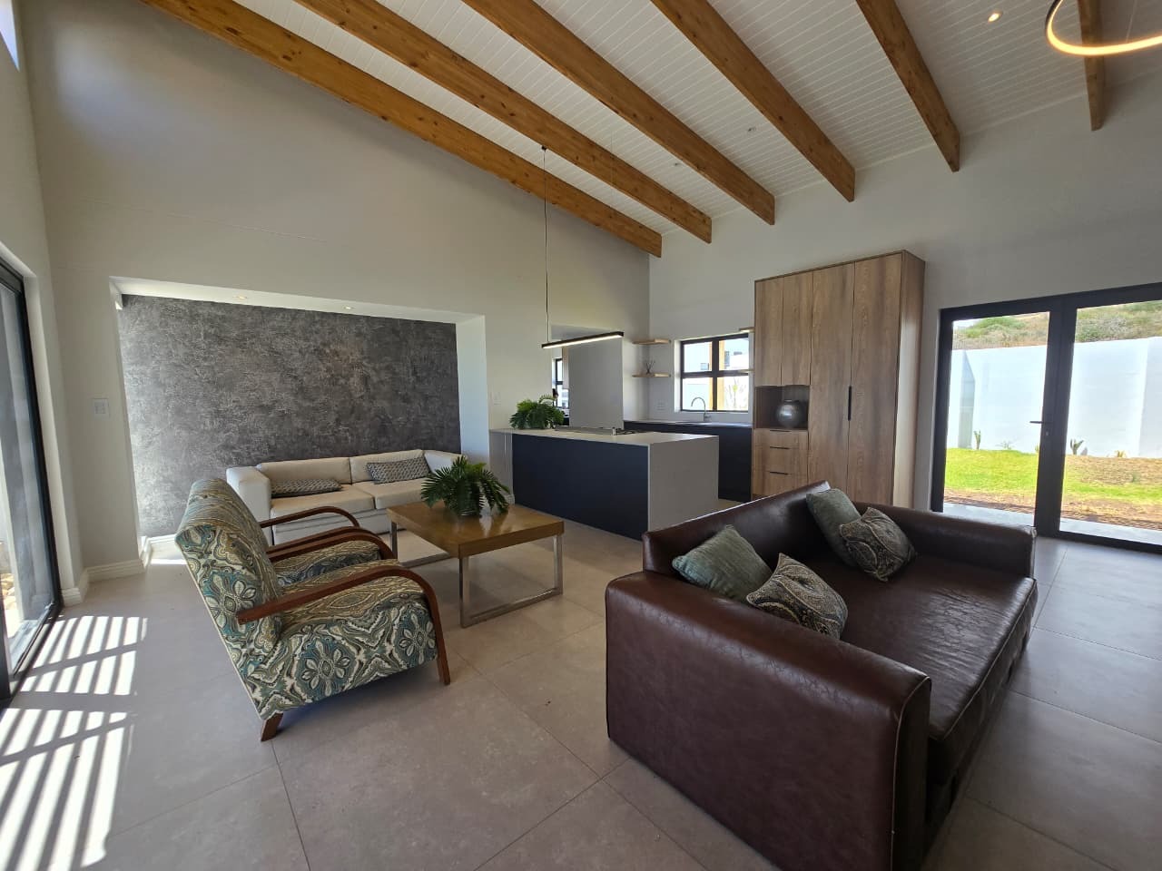 The interior of this home spans a comfortable 148 sqm, featuring a well-appointed kitchen, a dedicated dining room, and a spacious lounge, providing ample space for relaxation and entertaining. An inviting entrance hall sets the tone, leading into the main living areas, which include a dedicated braai room – perfect for year-round indoor entertaining.
