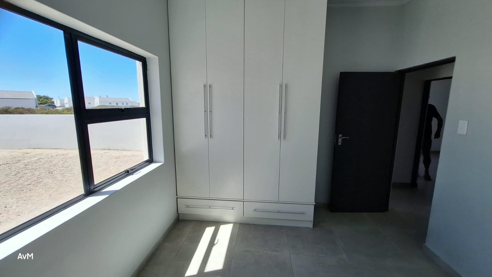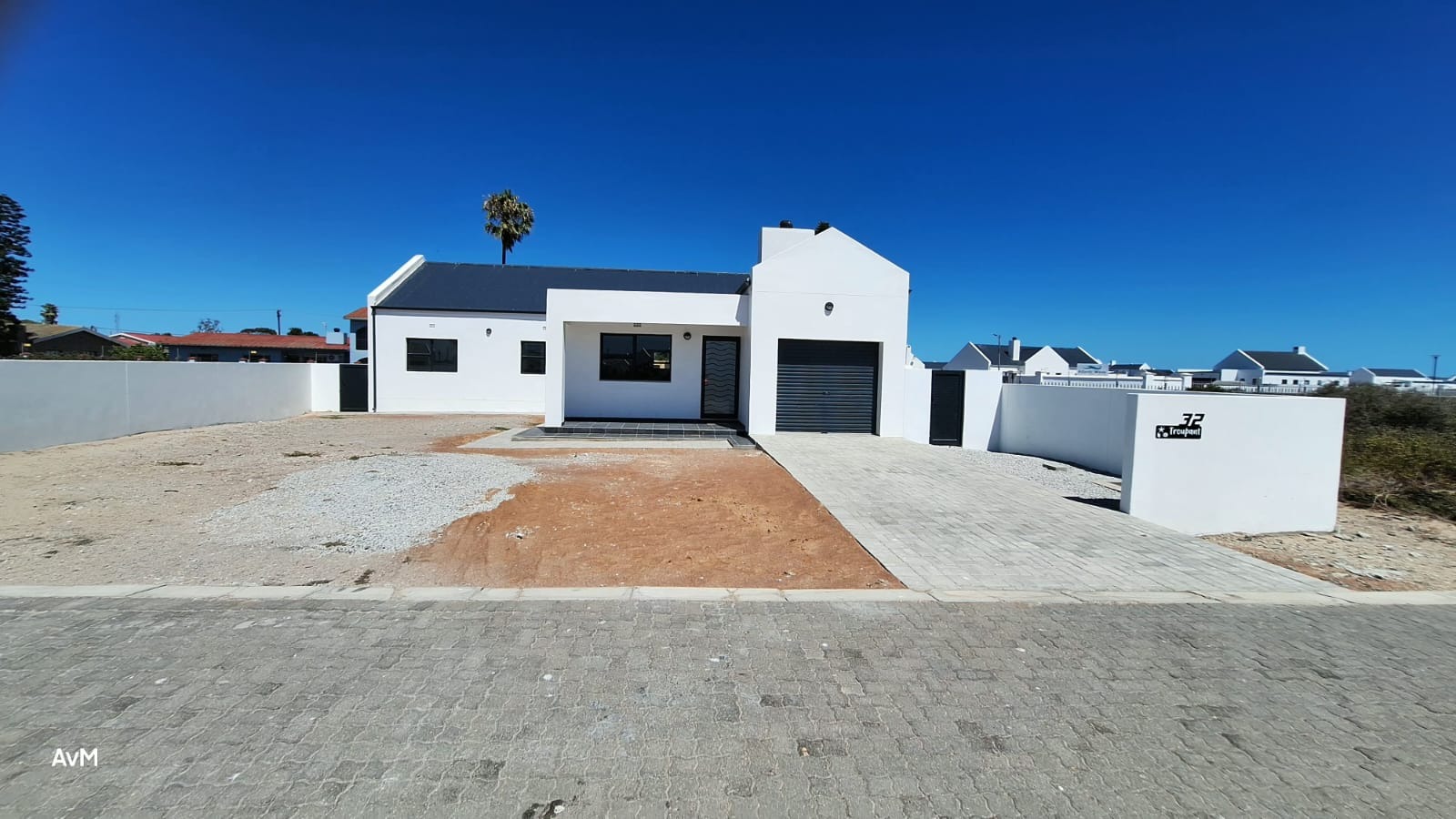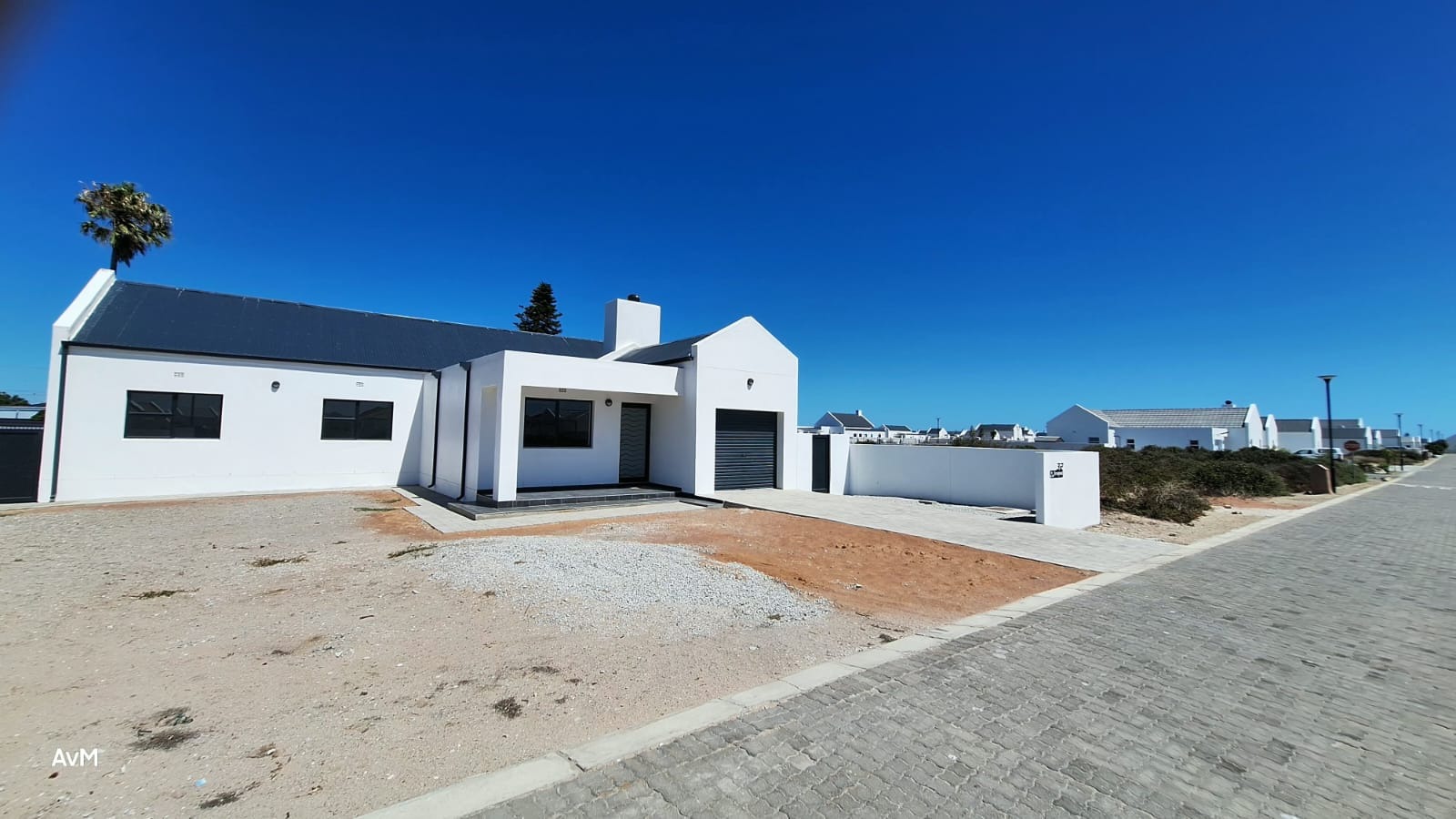 Discover this newly built, modern minimalist home, perfectly situated in the desirable coastal town of Velddrif, within the tranquil Laaiplek suburb. Presenting a striking first impression, the property features a clean white exterior complemented by dark accents, an integrated single garage, and a paved driveway, all enclosed by private perimeter walls. The 503 sqm erf offers a generous blank canvas for future landscaping, allowing you to create your ideal outdoor sanctuary.