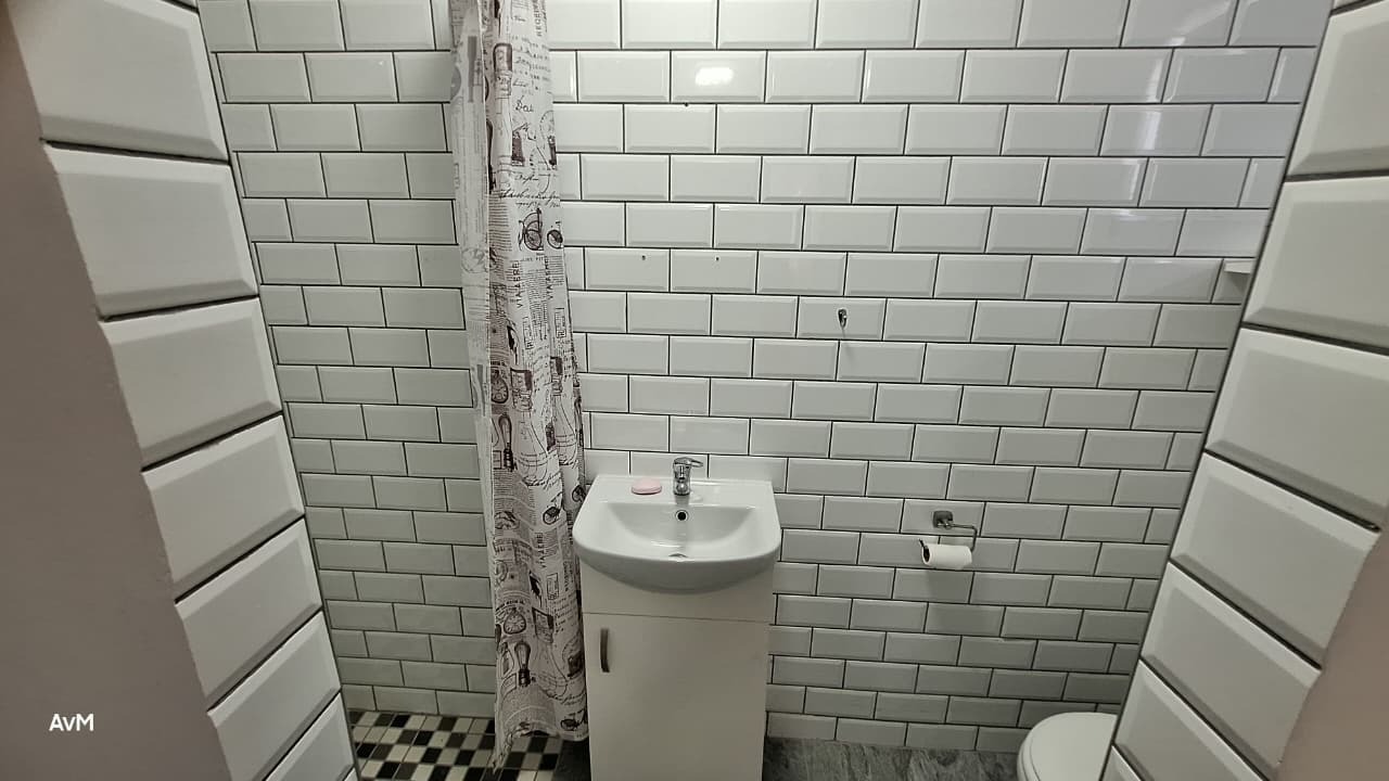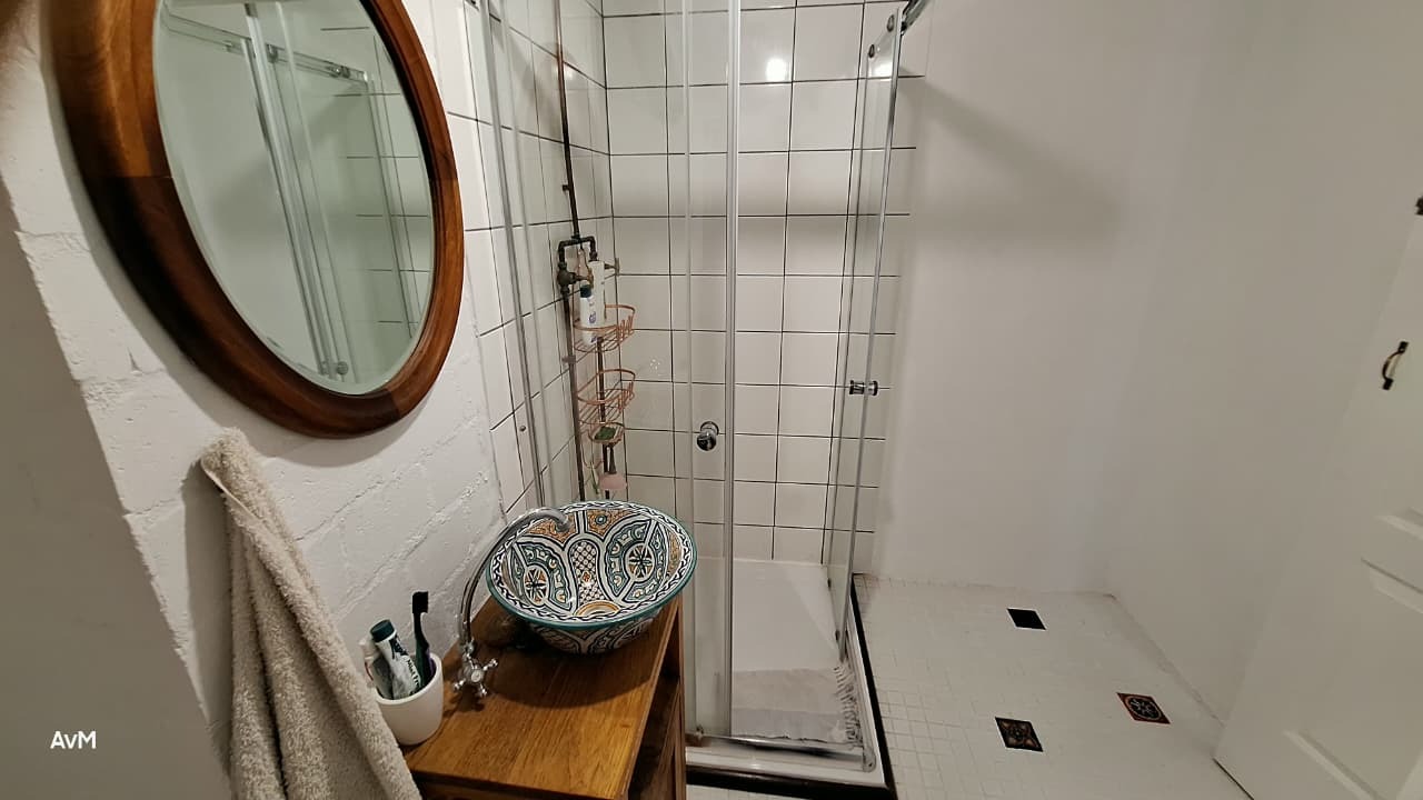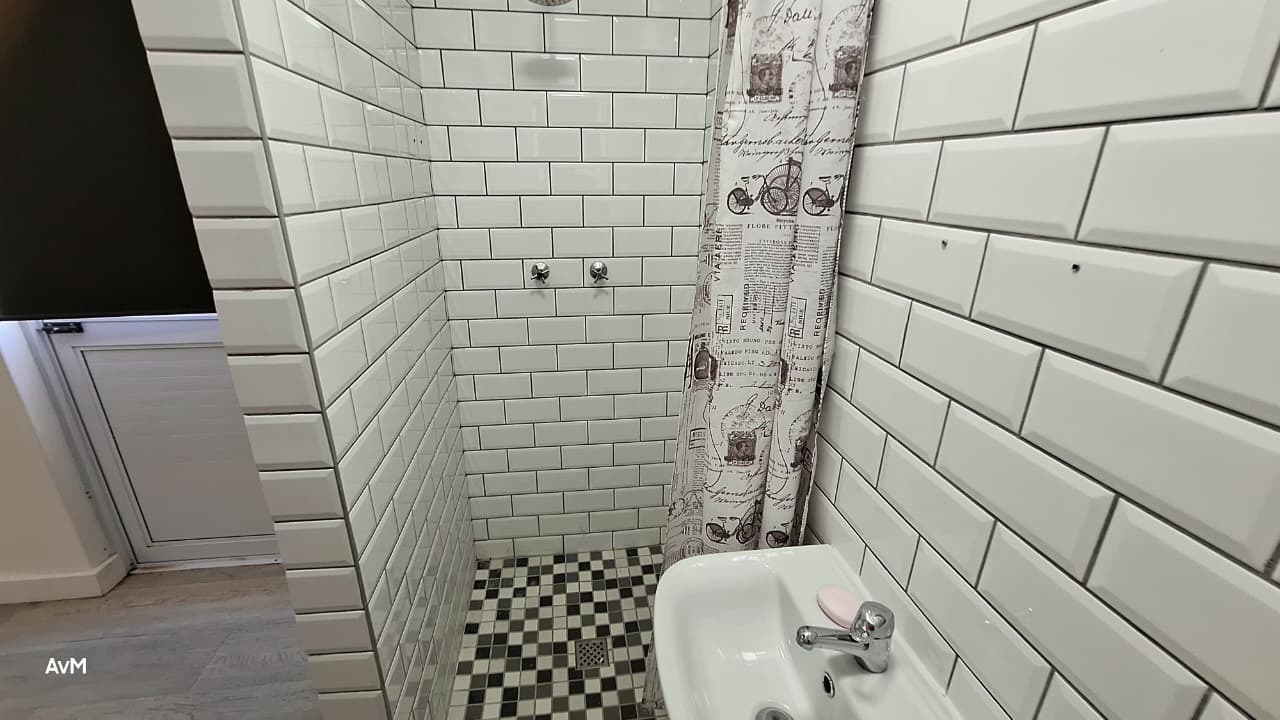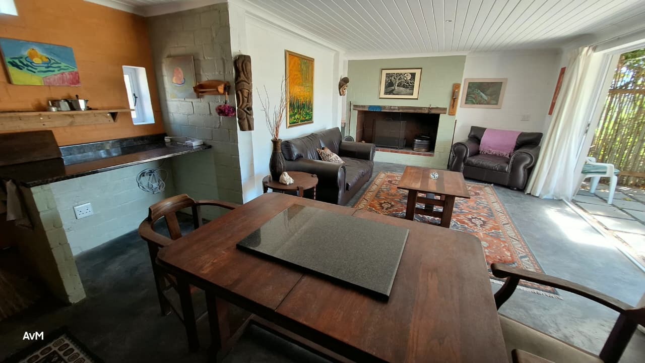 Inside, you’ll discover a unique and eclectic open-plan living space that truly feels like home. The lounge, dining room, and kitchen flow together beautifully, making it super easy to entertain or just chill out. Imagine cozy evenings by the fireplace, which features a vibrant, multicolored tiled counter that adds a real pop of character. The white painted brick walls and concrete-style flooring give the space a rustic yet clean feel, while a large window lets in plenty of natural light. The kitchen is practical and charming, boasting an L-shaped setup with ample storage, a classic farmhouse sink, and a spacious dining table – perfect for family meals or hosting friends.