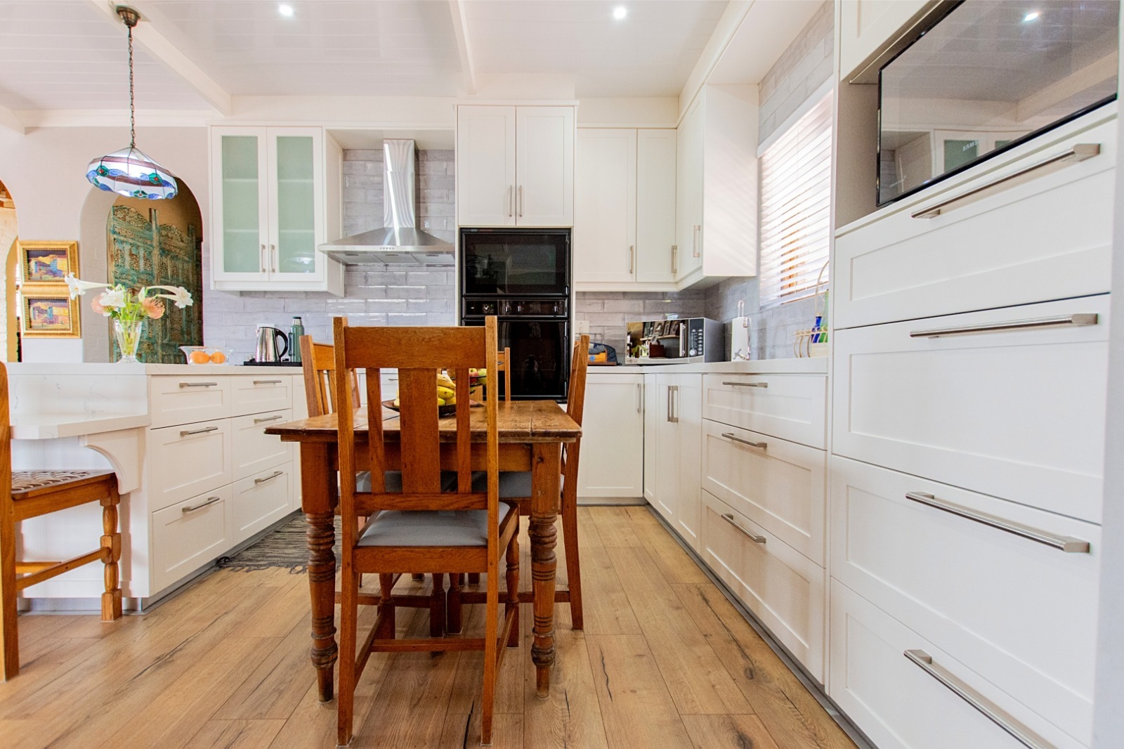 Additional features include a double garage, alarm system, access gate, fencing, and burglar bars, ensuring peace of mind and secure living.