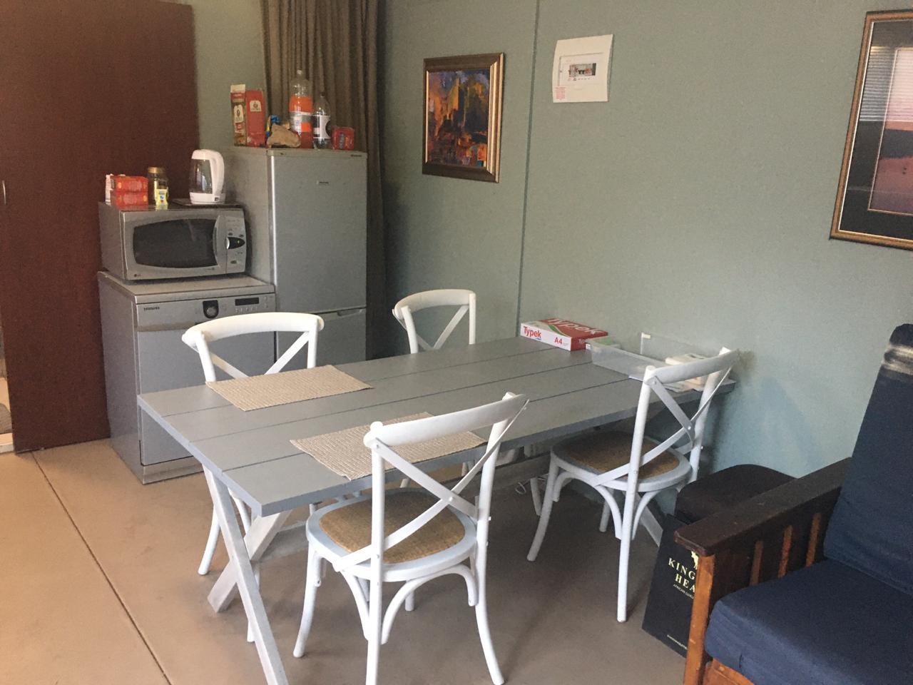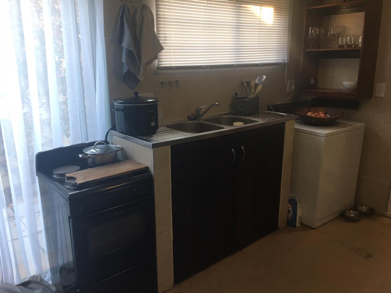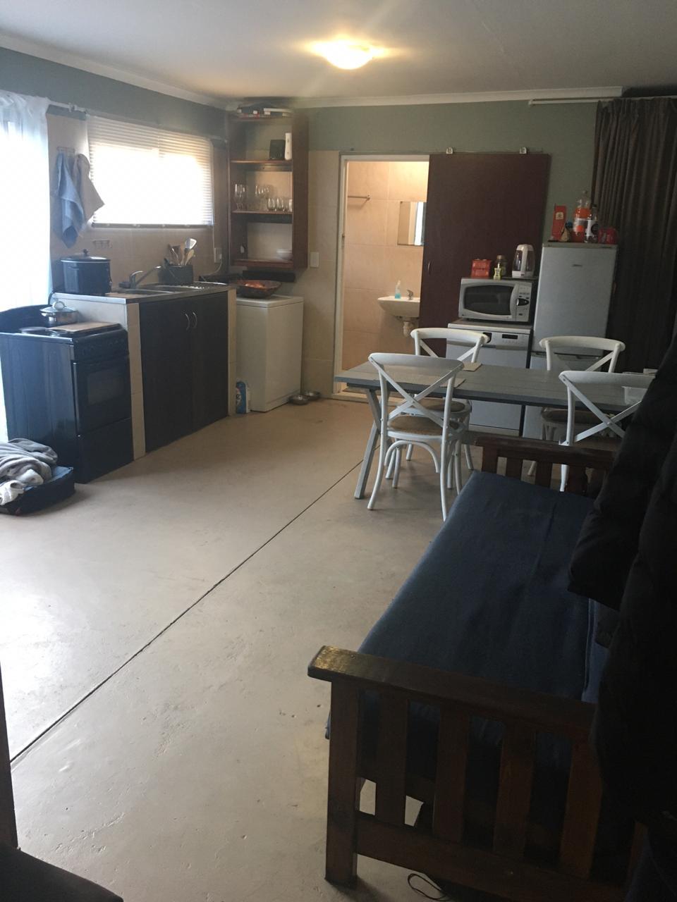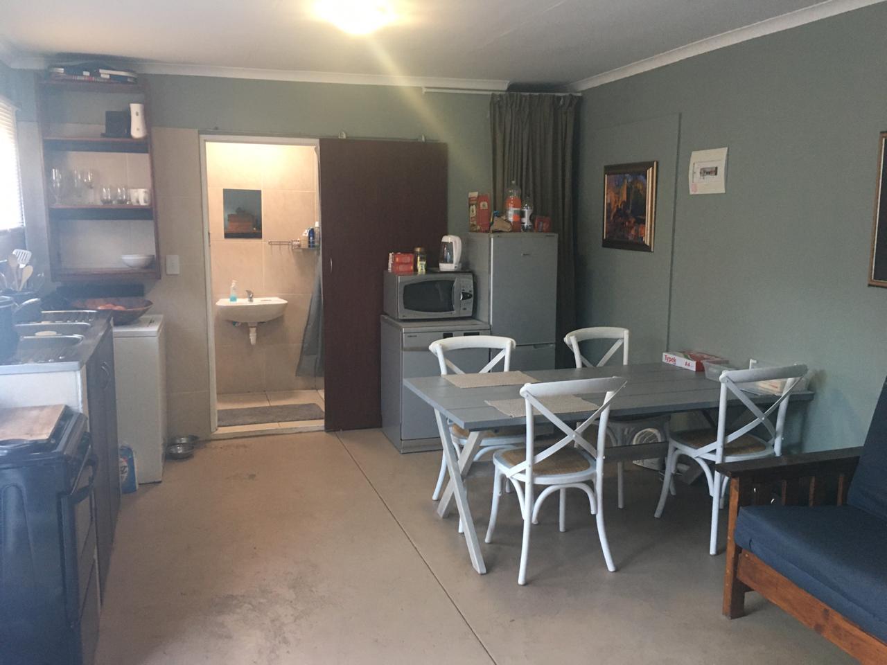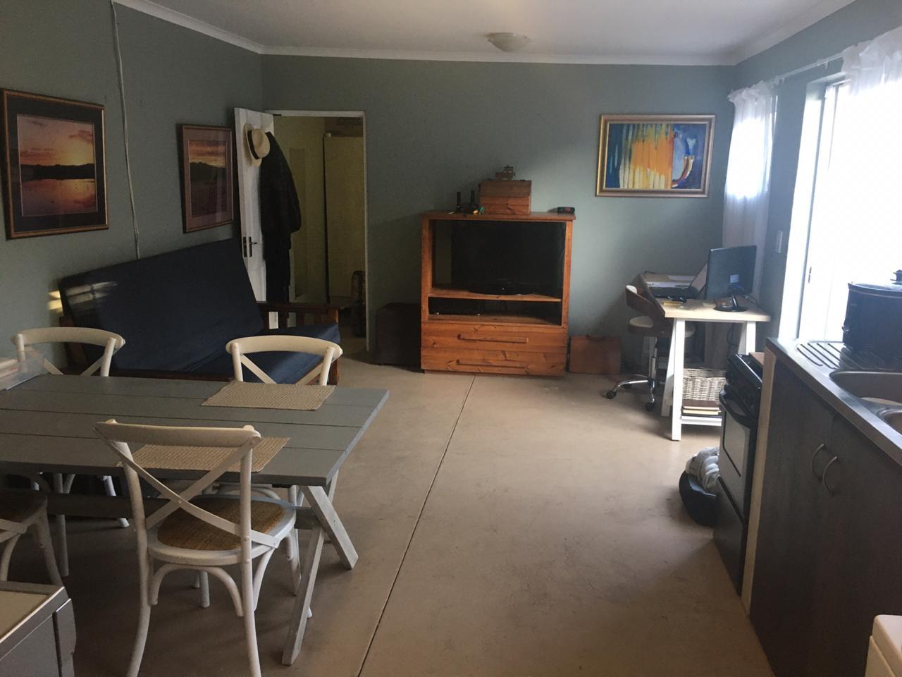 Very safe and secure plus spacious inside. Long term or short term rental. Flat has it's own private entrance with a single garage and outside braai. Situated in central area of Langebaan close to shops and beach.